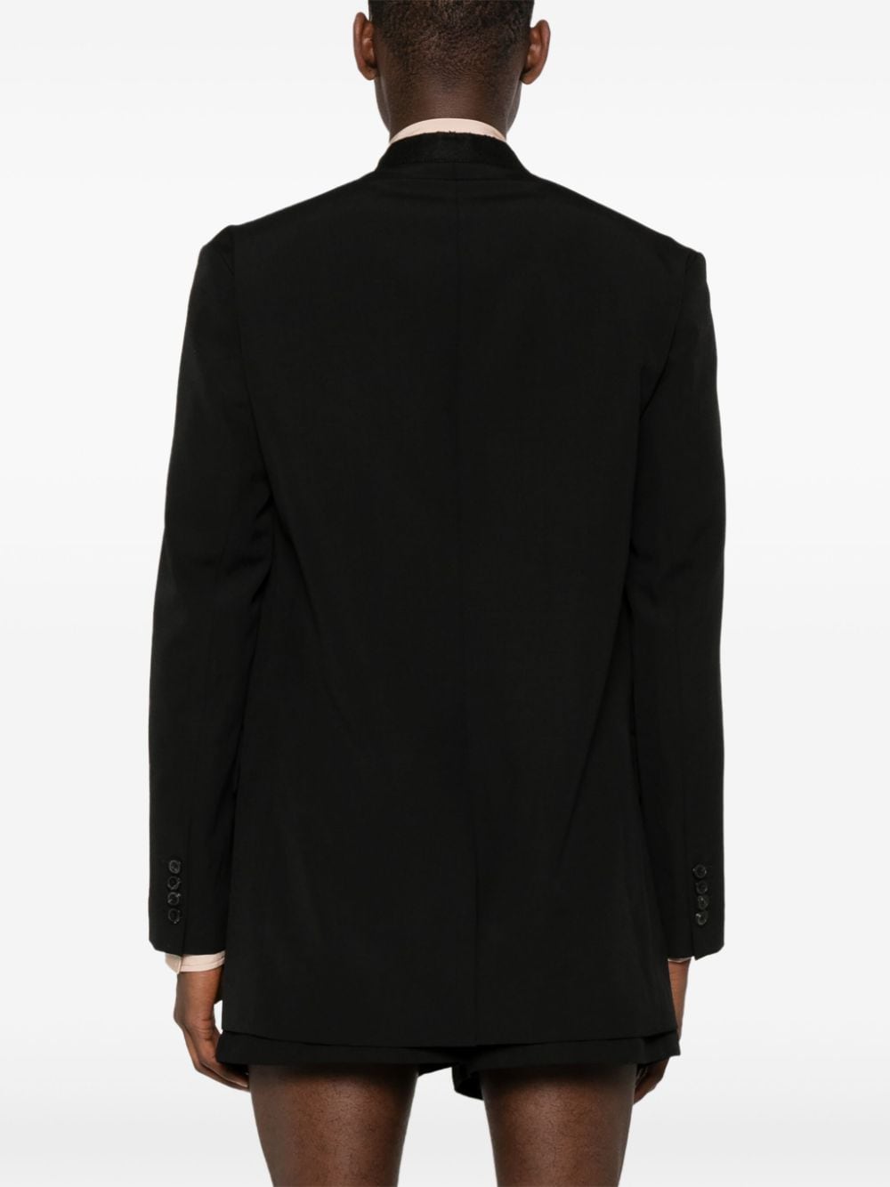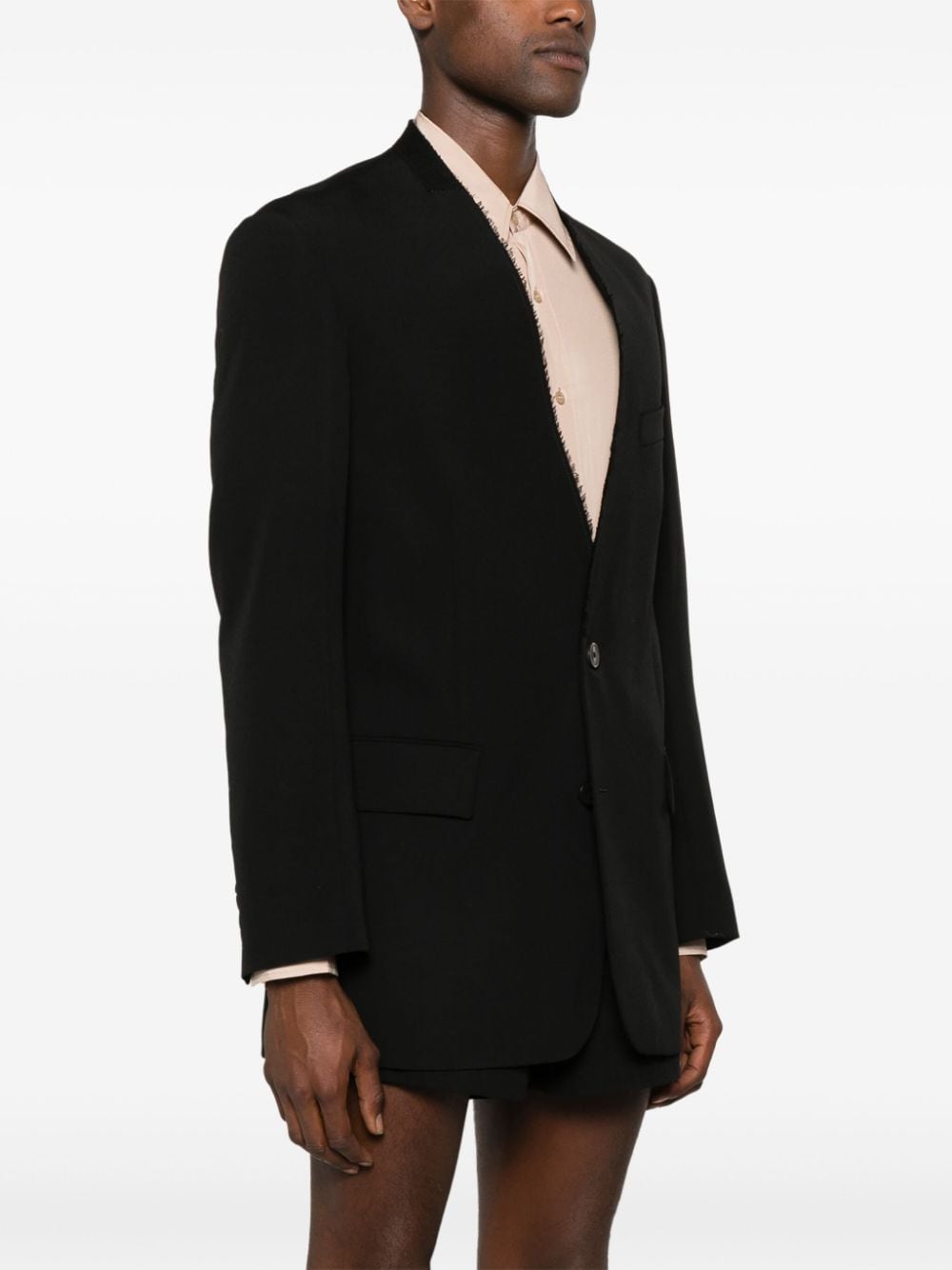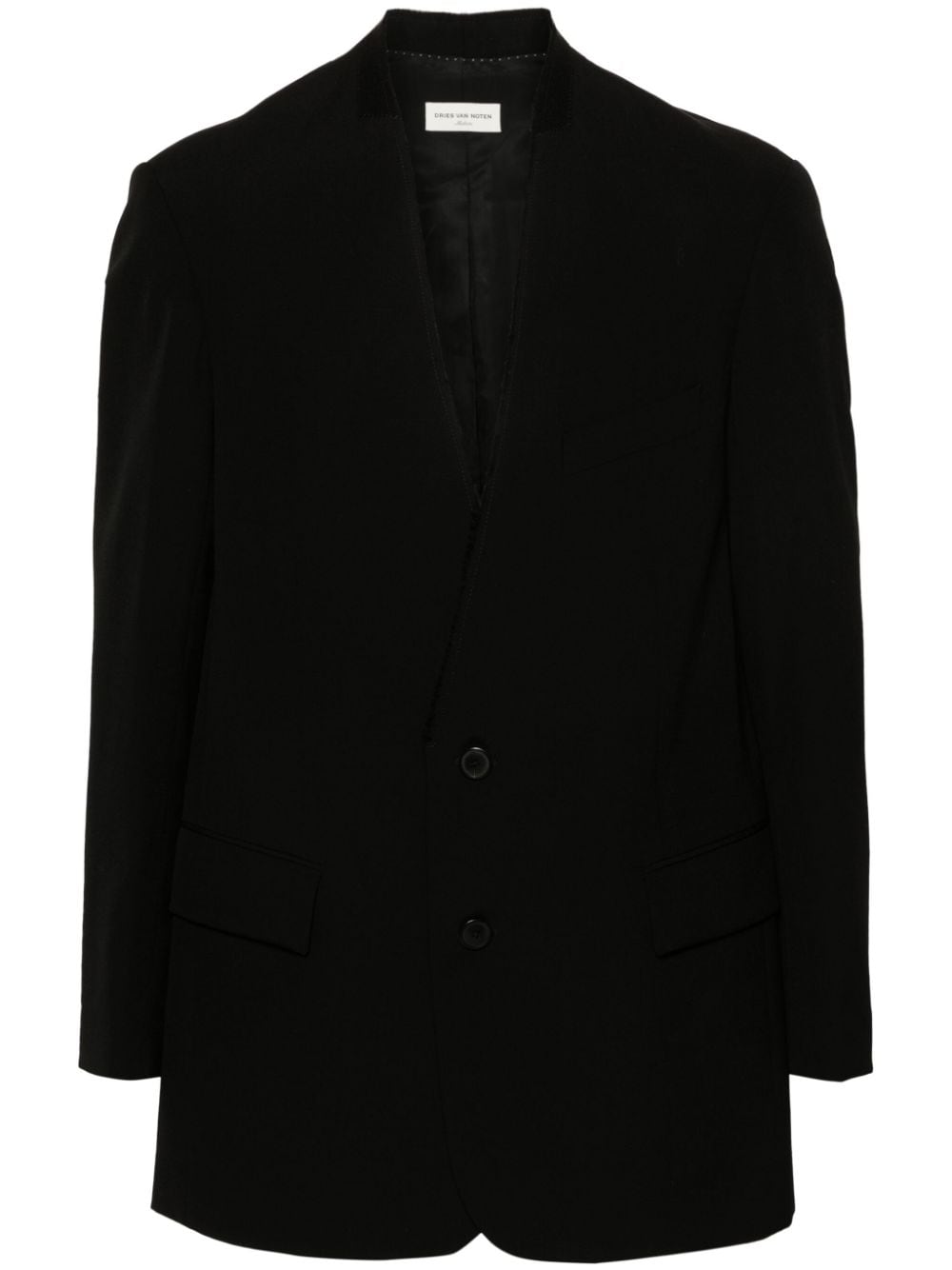 giacca sartoriale, senza collo e con bordo a taglio vivo, taschino, tasche, foderata, tasche interne Composizione: 100% lana Istruzioni per il lavaggio: lavare a secco