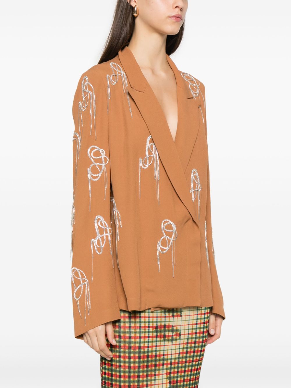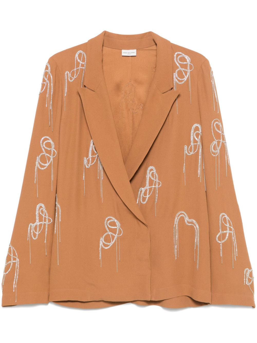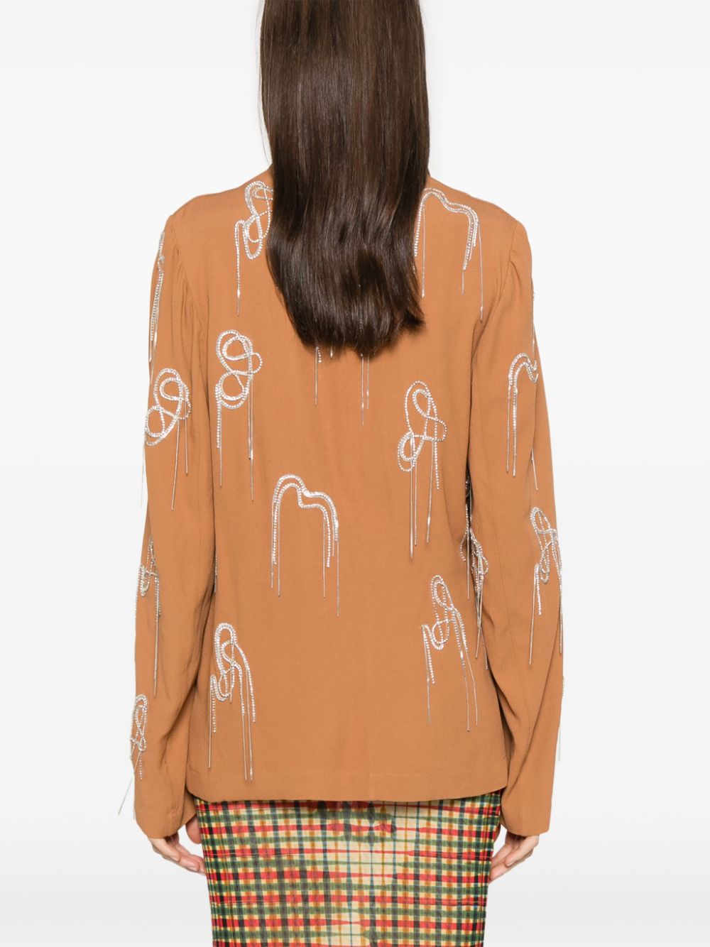 giacca, decostruita, chiusura coperta con bottoni, scollo a v, revers a lancia, senza fodera, manica lunga, applicazione di collane spezzate in cristallo Composizione: 73% acetato 23% viscosa Istruzioni per il lavaggio: lavare a secco