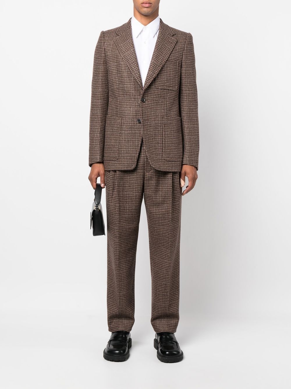 giacca, due bottoni, tessuto Lovat con stampa jaquard, tasche applicate, taschino, tascha interna, collo con revers a specchio,foderata, spacchi laterali Composizione: 100% lana Istruzioni di lavaggio: lavare a secco