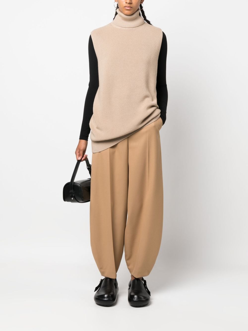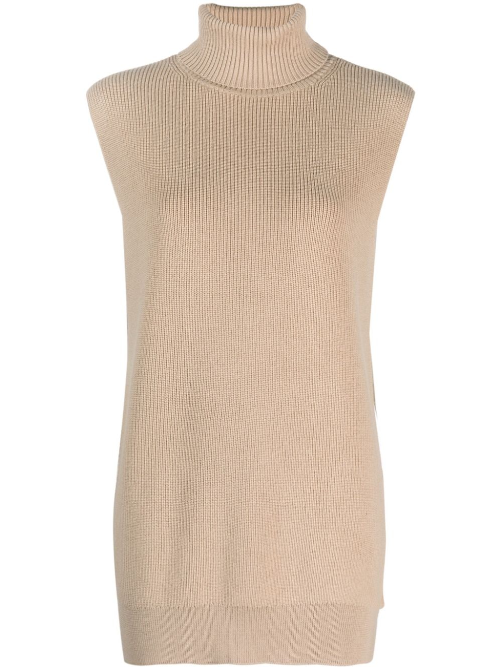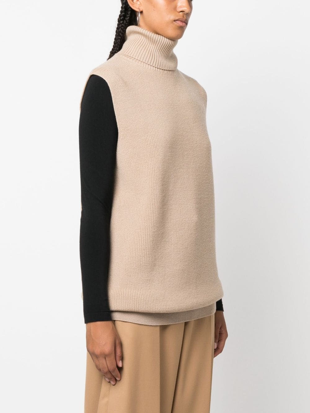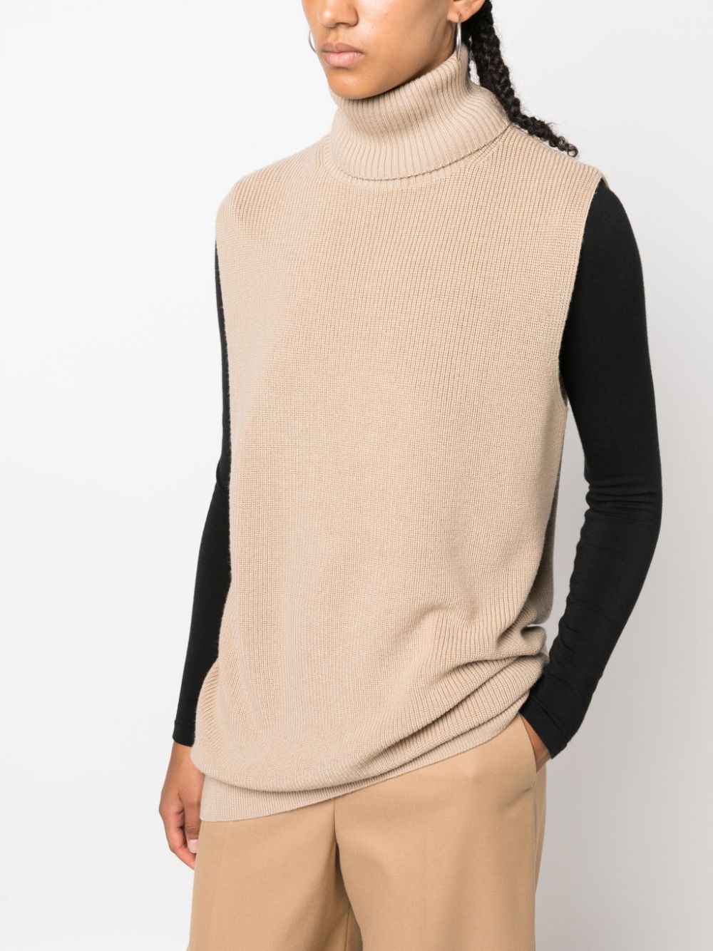 maglione, collo alto , senza maniche, vestibilità ampia e lunga
