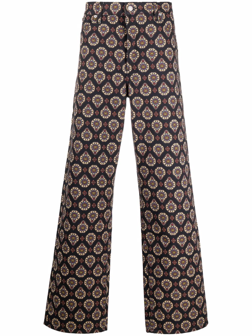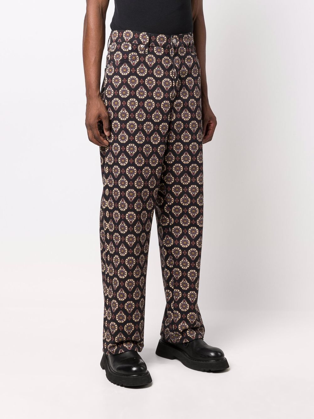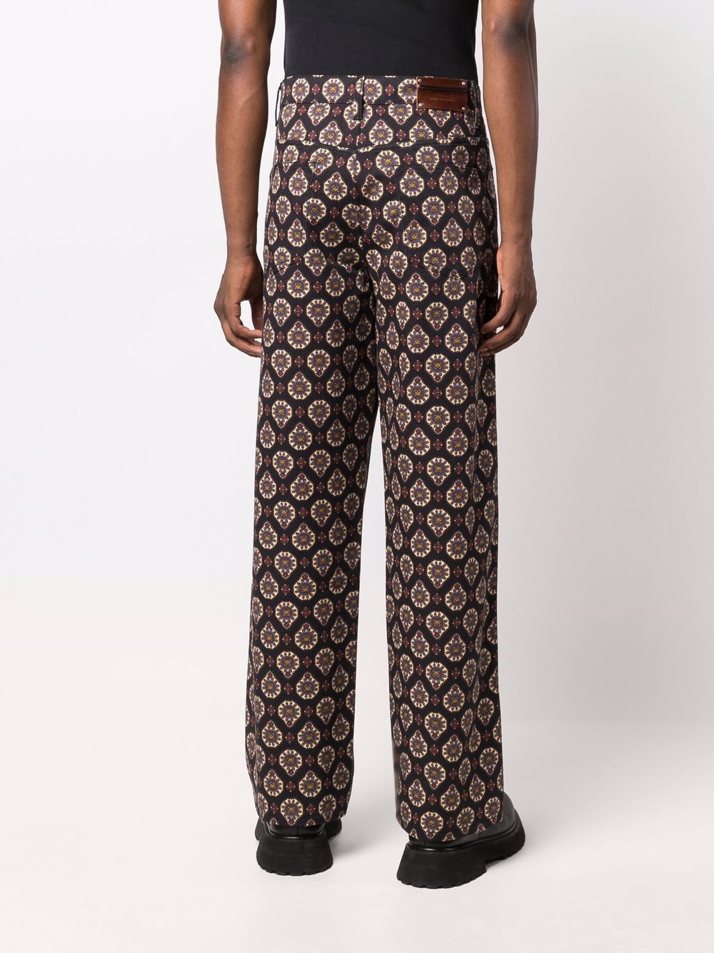 pantalone, 5 tasche, stampa, logo su targhetta in pelle, chiusura con bottoni, passanti per cintura, gamba larga Composizione: 100% cotone Istruzioni di lavaggio: lavare a 30° o a secco