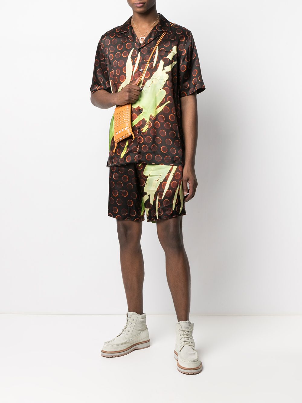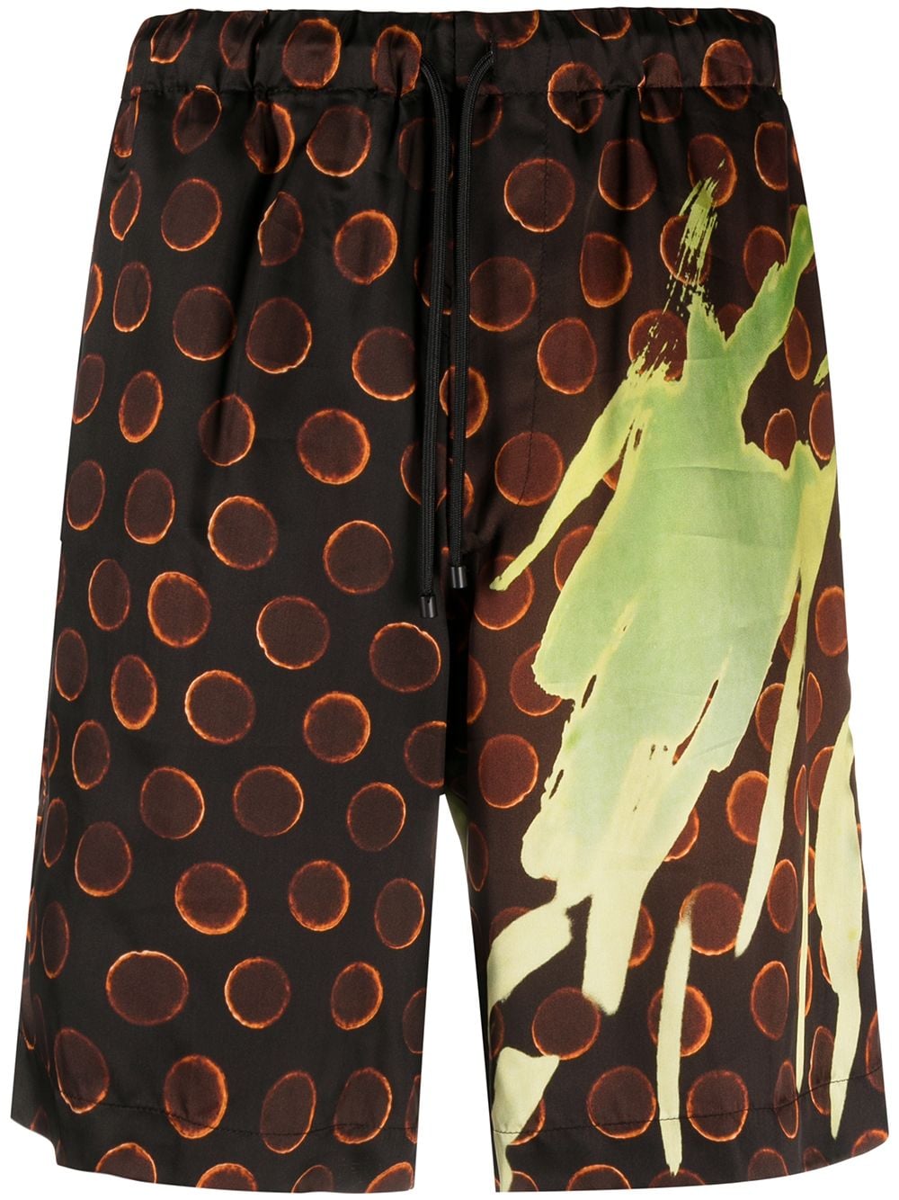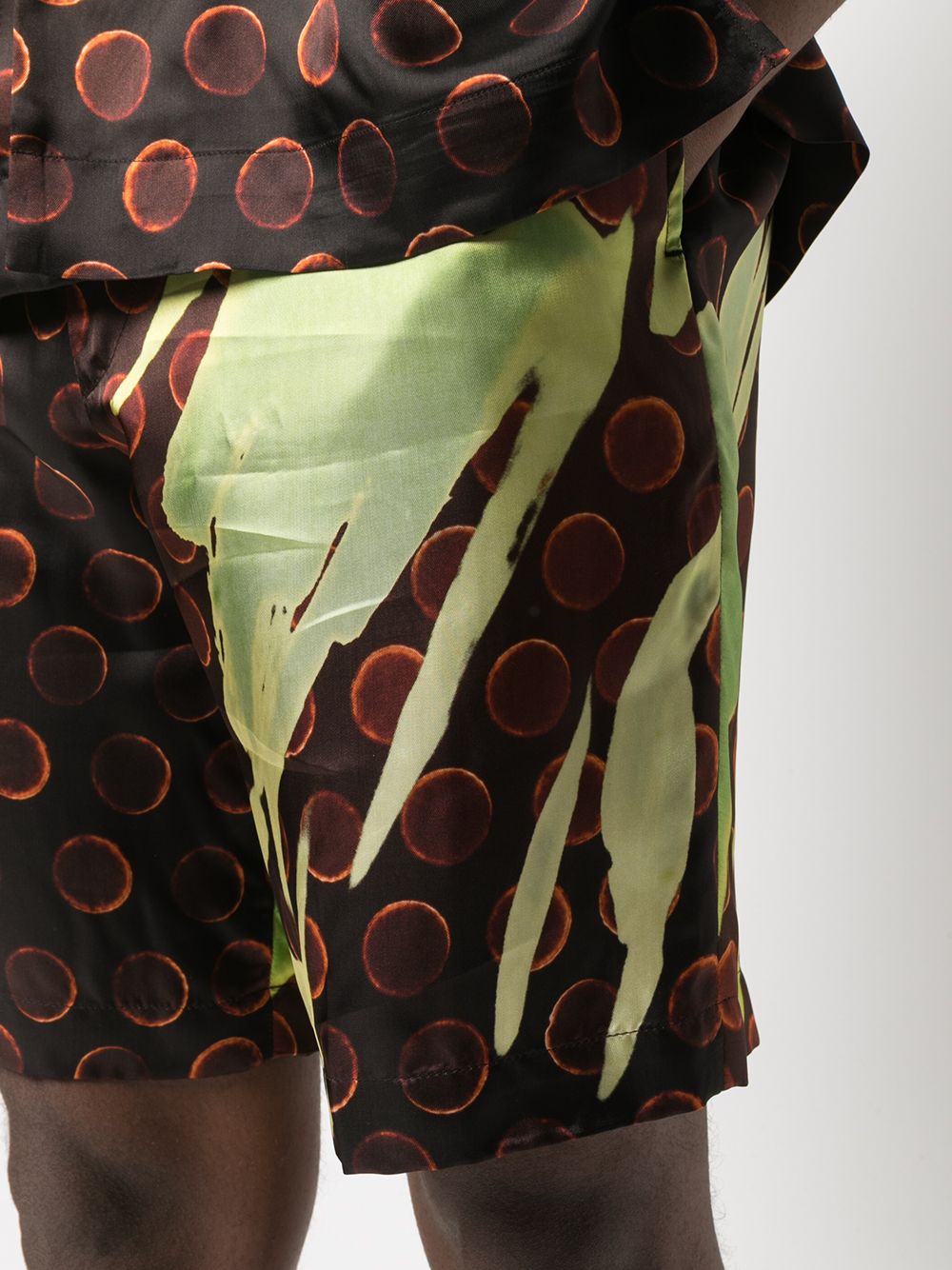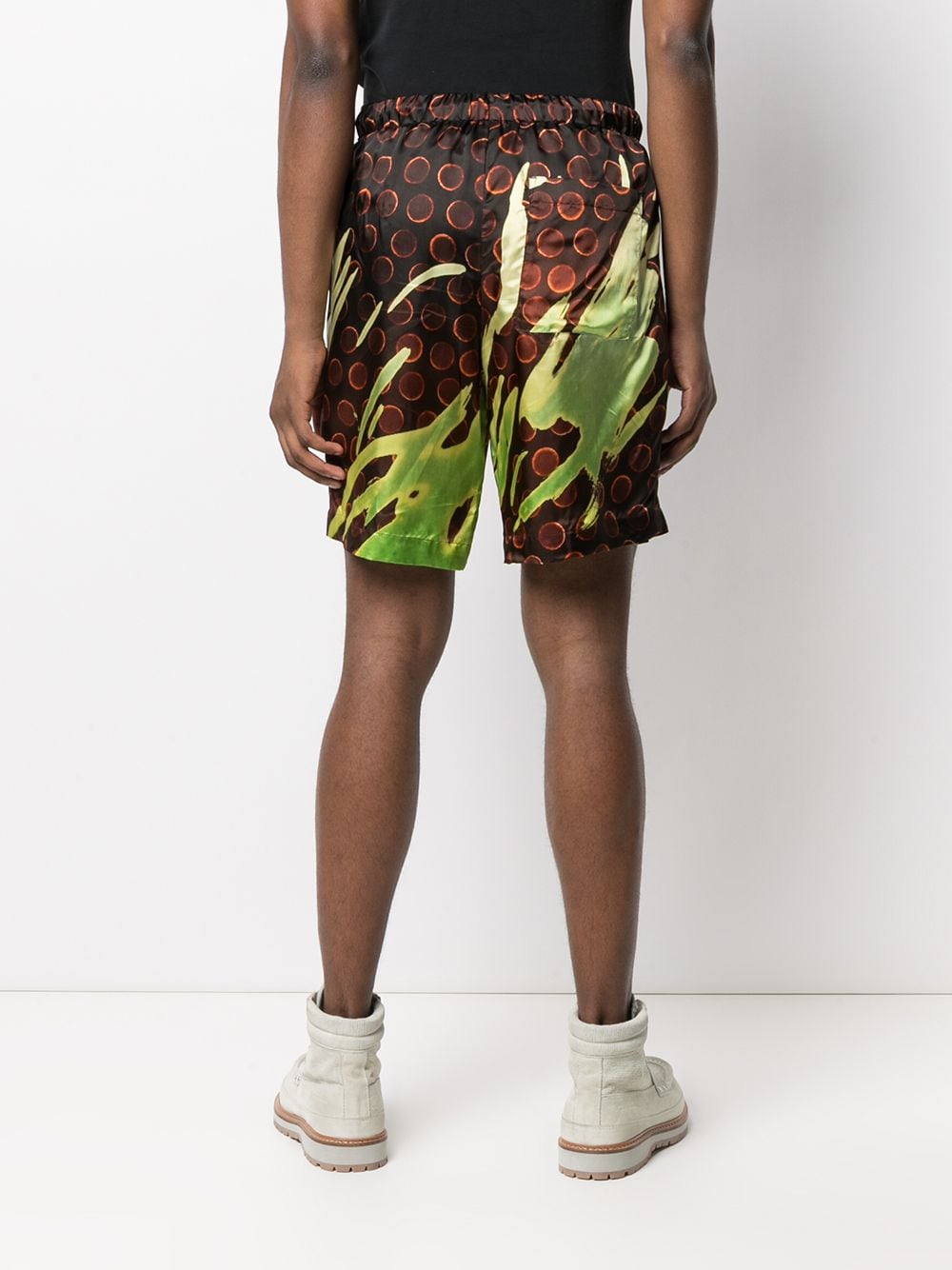 Pantalone corto con elastico, tasche laterali ed una posteriore, sfoderato, stampa Len Lye Composizione: 100% viscosa Istruzioni per il lavaggio: lavare a secco