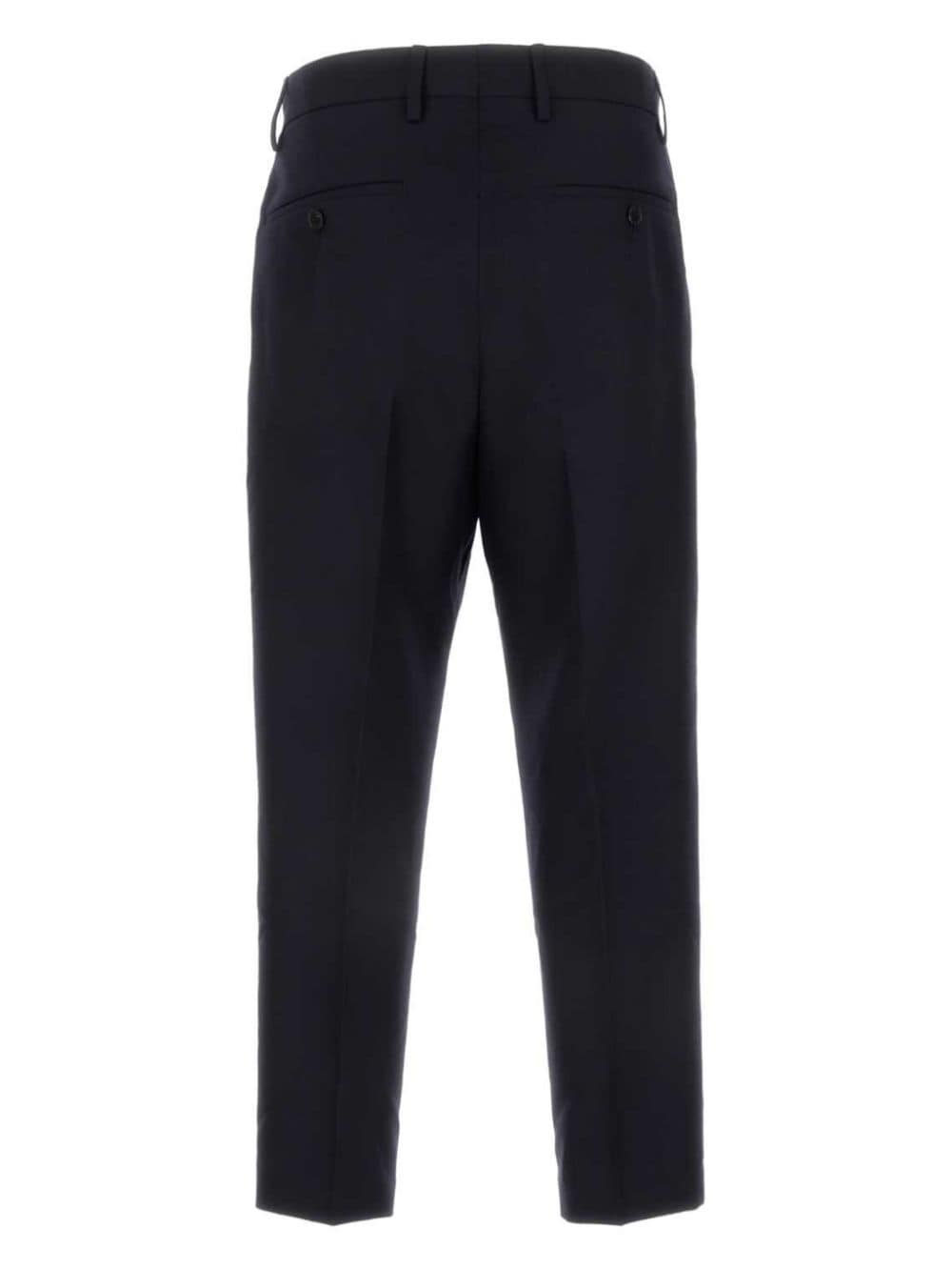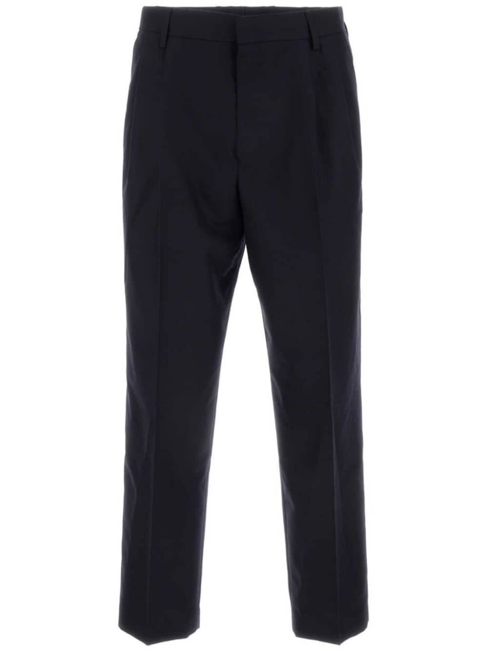 pantalone, passanti per cintura, chiusura con gancio e zip, pences, gamba larga con fondo piu' stretto, tasche laterali e posteriori Composizione: 100% lana Istruzioni per il lavaggio: lavare a secco