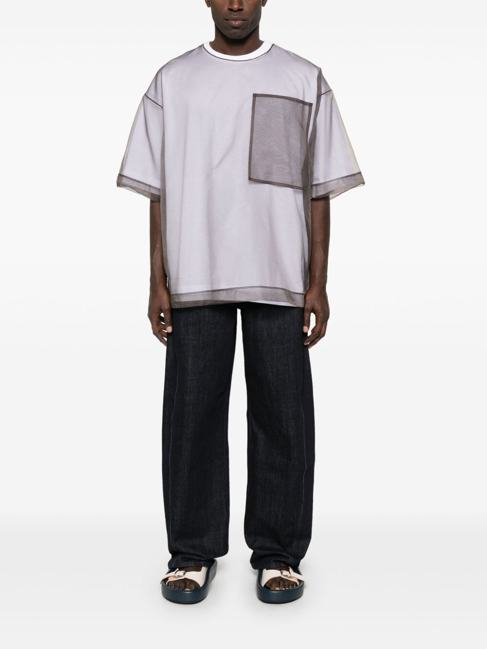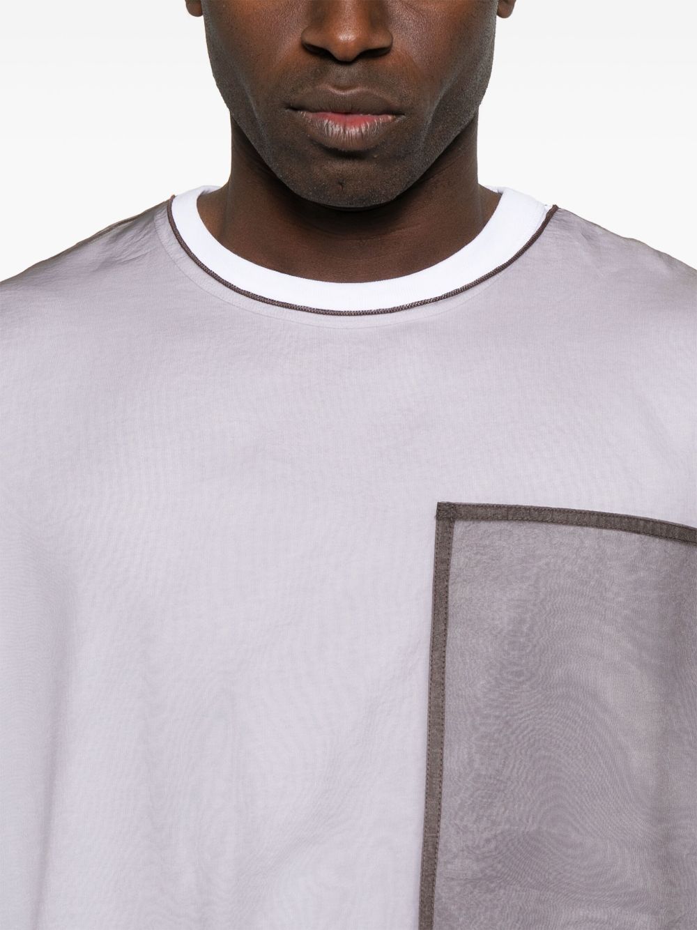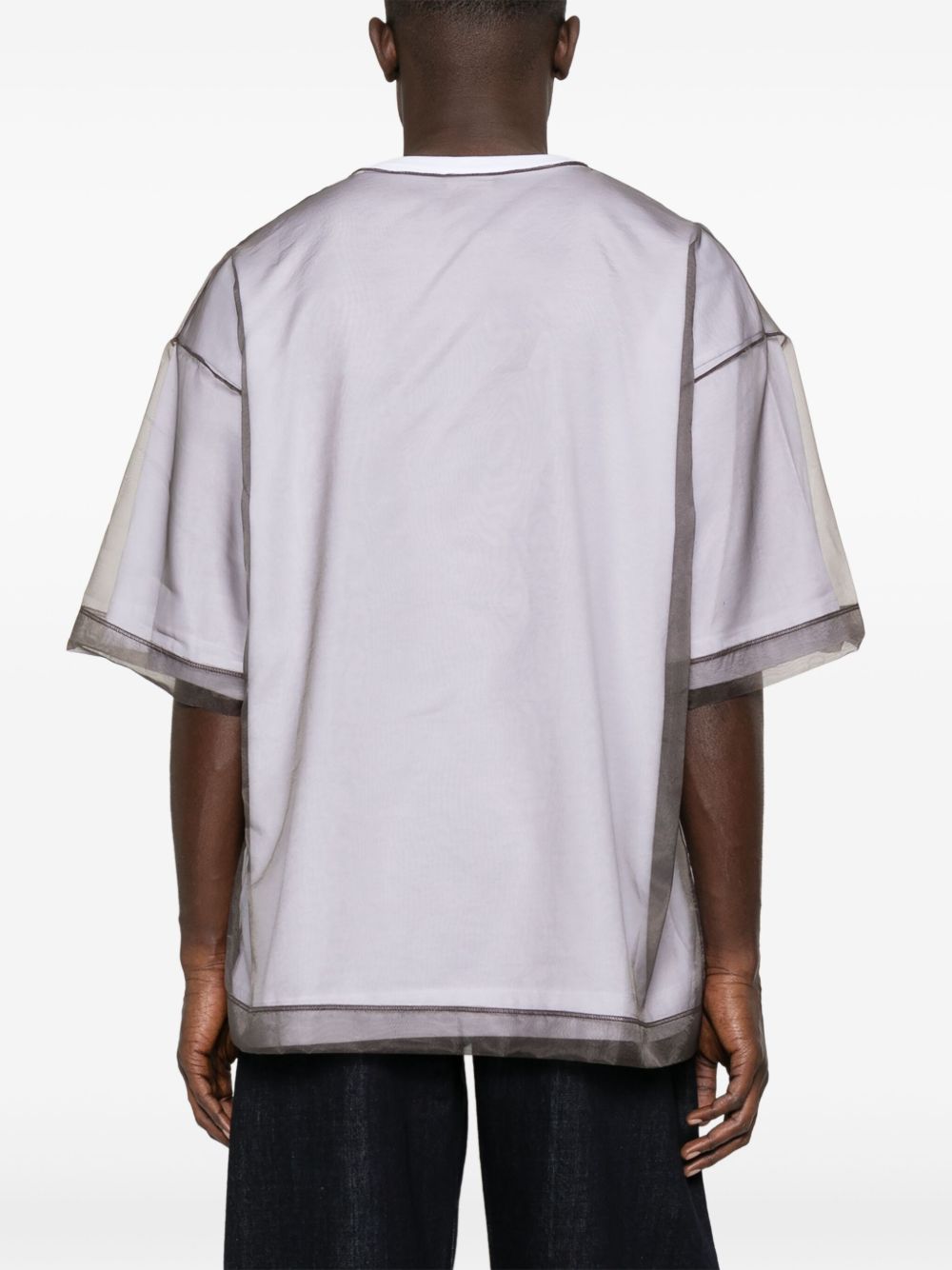 t-shirt, girocollo, manica corta, doppio strato in jersey e organza, tasca grande laterale, vestibilità ampia Composizione: 50% cotone 50% poliestere Istruzioni di lavaggio: lavare a secco