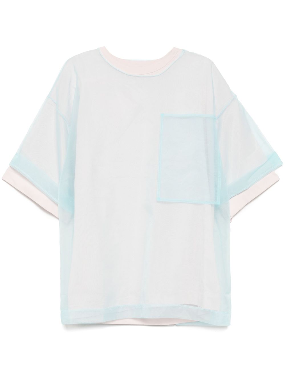 t-shirt, girocollo, manica corta, doppio strato in jersey e organza, tasca grande laterale, vestibilità ampia Composizione: 50% cotone 50% poliestere Istruzioni di lavaggio: lavare a secco