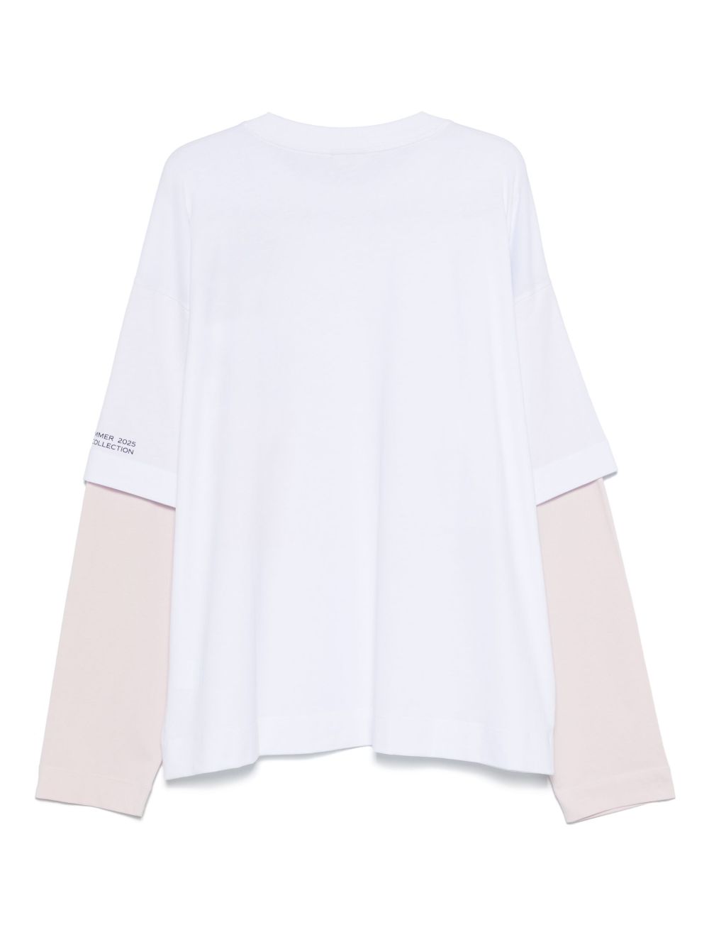 t-shirt, girocollo, oversized, manica lunga, effetto doppiata, stampa laterale, bicolore