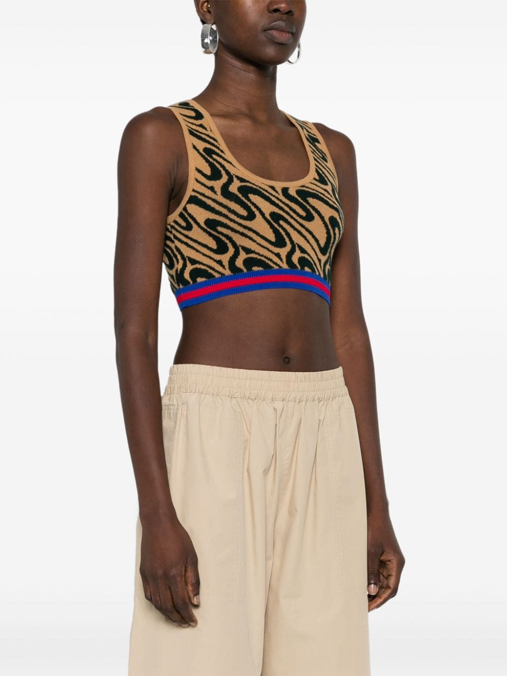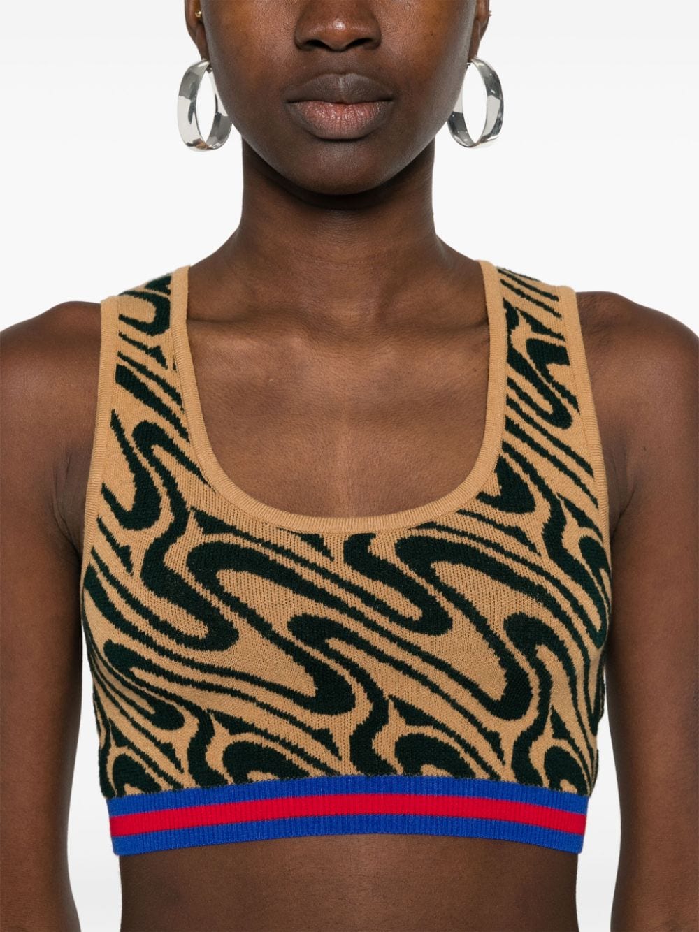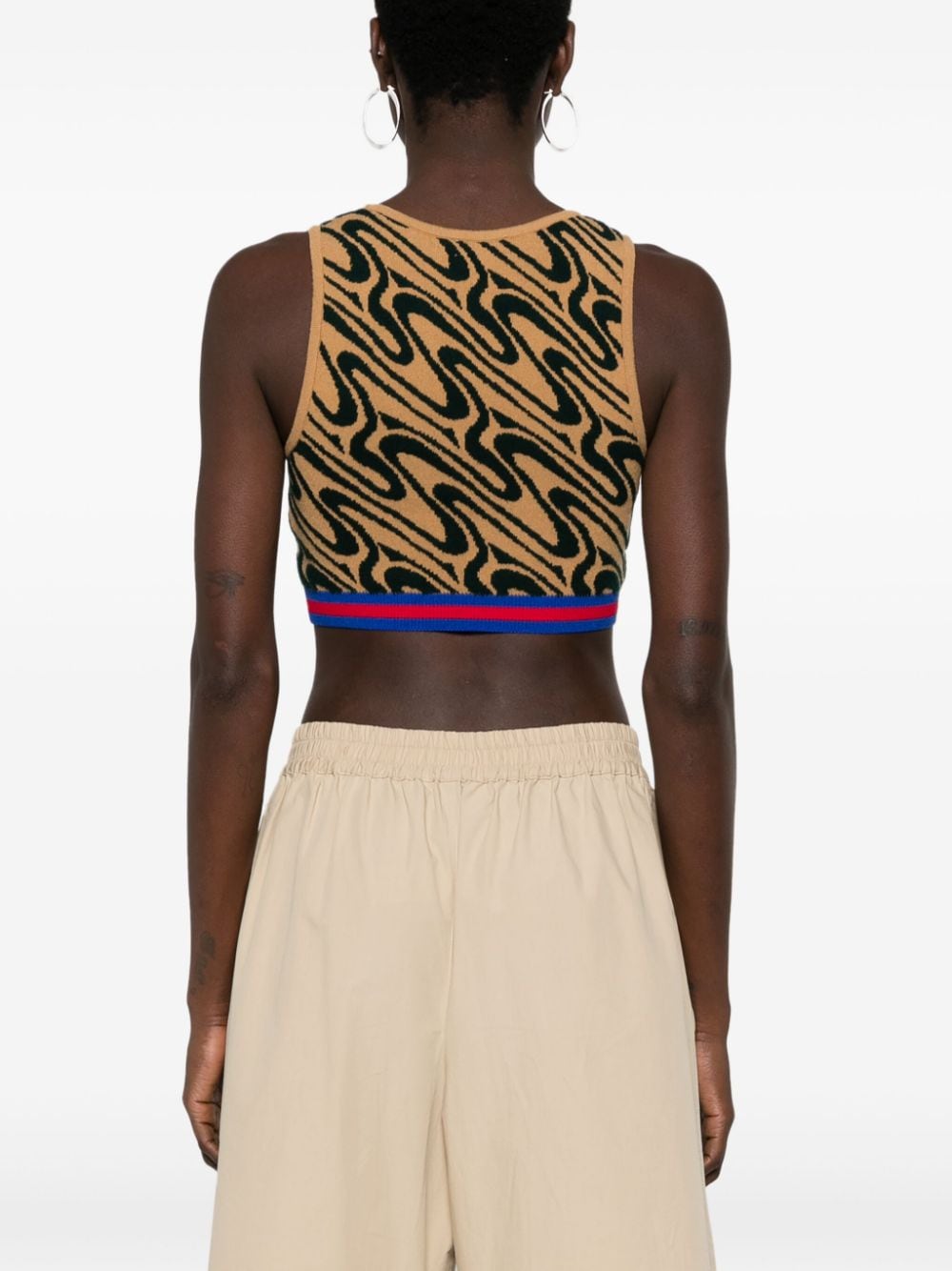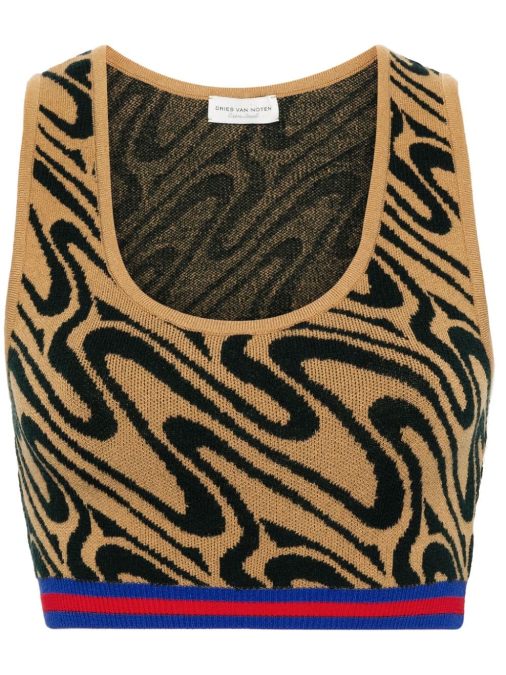 top, maglia, scollo ovale, senza maniche, modello corto, fantasia geometrica, bordo rigato in contrasto Composizione: 44% viscosa 38% lana merino 18% poliestere Istruzioni per il lavaggio: lavare a 30°
