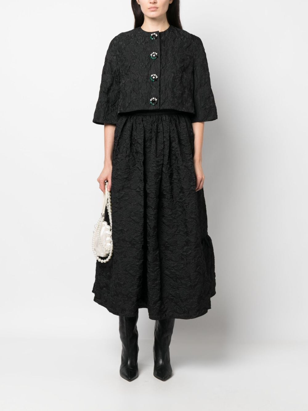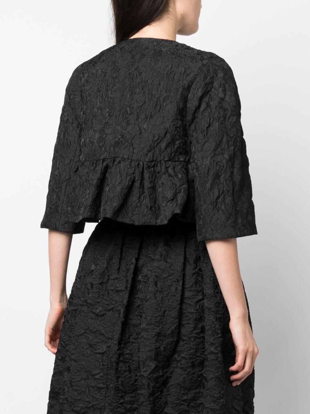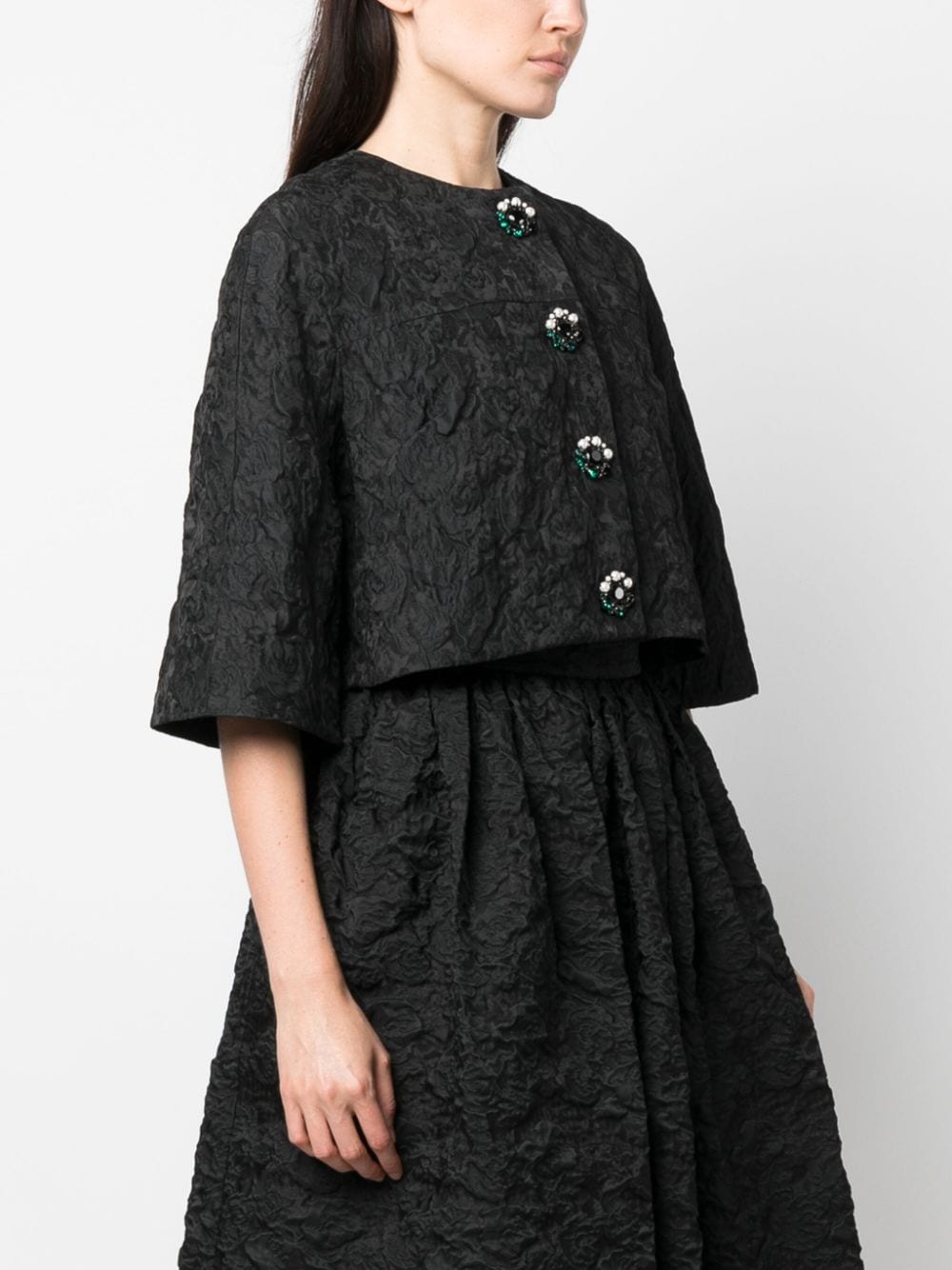 giacchina corta, girocollo, bottoni gioiello , rouches posteriore, maniche tre quarti, tessuto con motivo a rilievo Composizione: 83% poliestere 17% poliammide Istruzioni per il lavaggio: lavare a secco