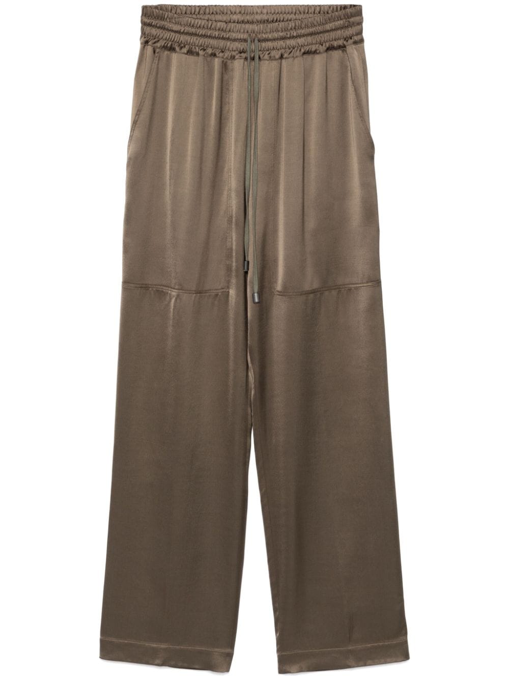 pantalone, vita con elastico e coulisse, gamba larga, tasche laterali, raso Composizione: 87% viscosa 13% lana Istruzioni per il lavaggio: lavare a secco