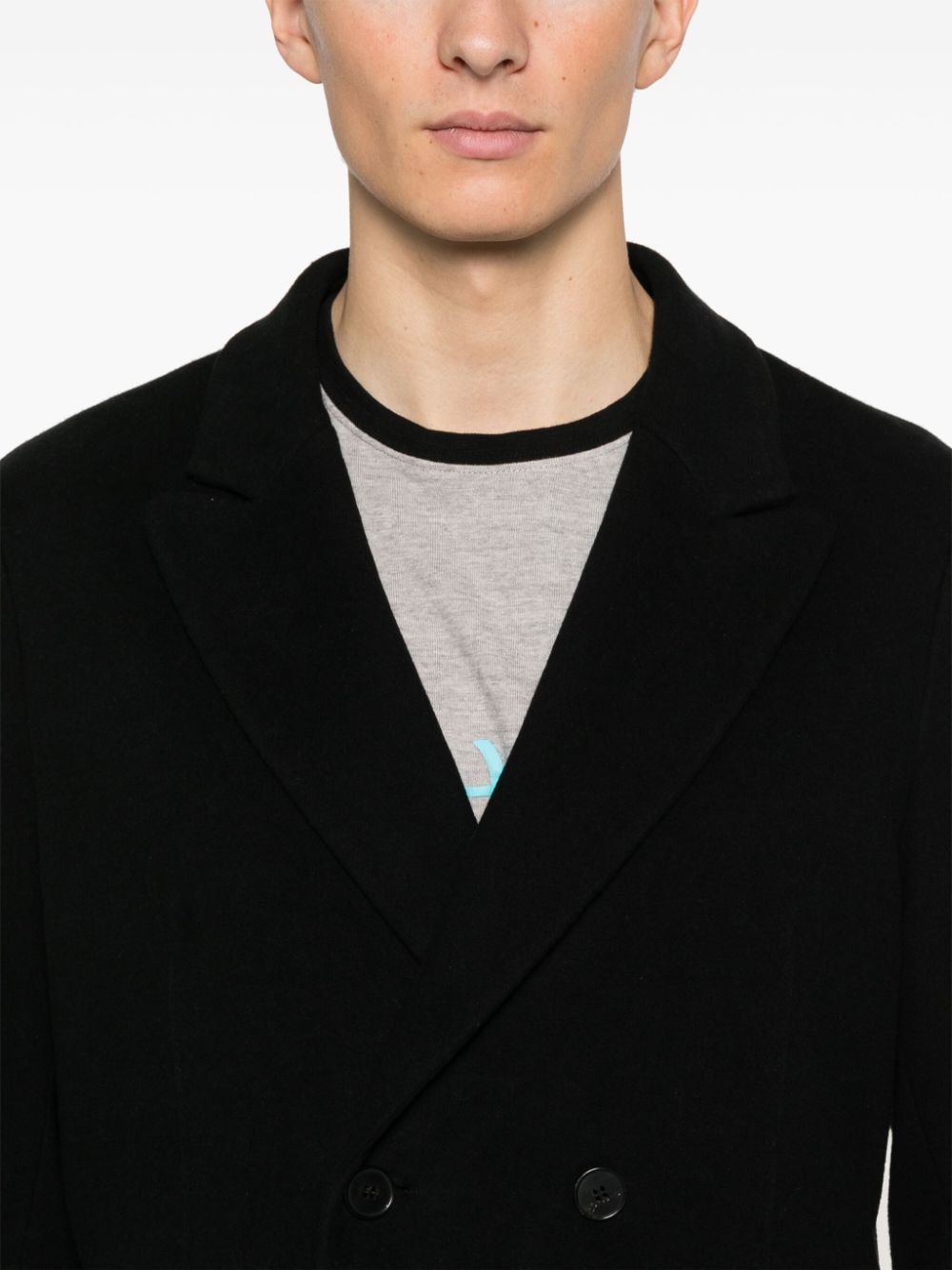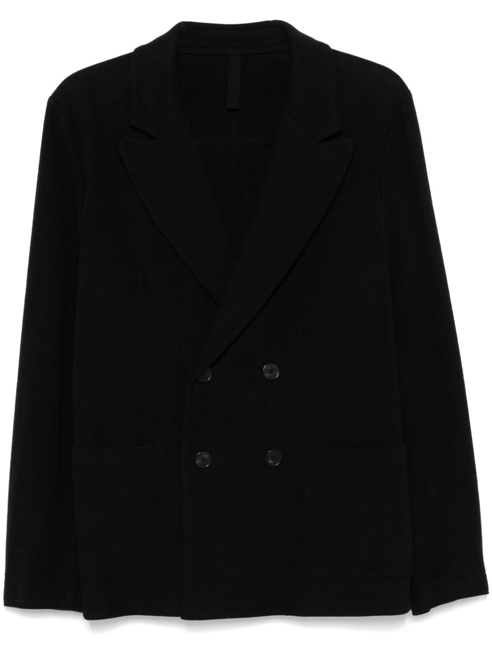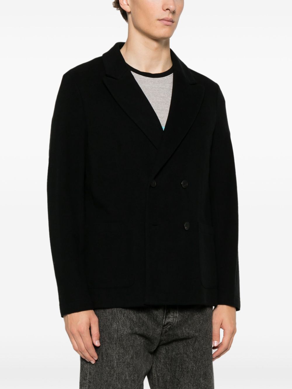 giacca, doppio petto, revers a lancia, chiusura con bottoni, tasche laterali applicate, sfoderata
