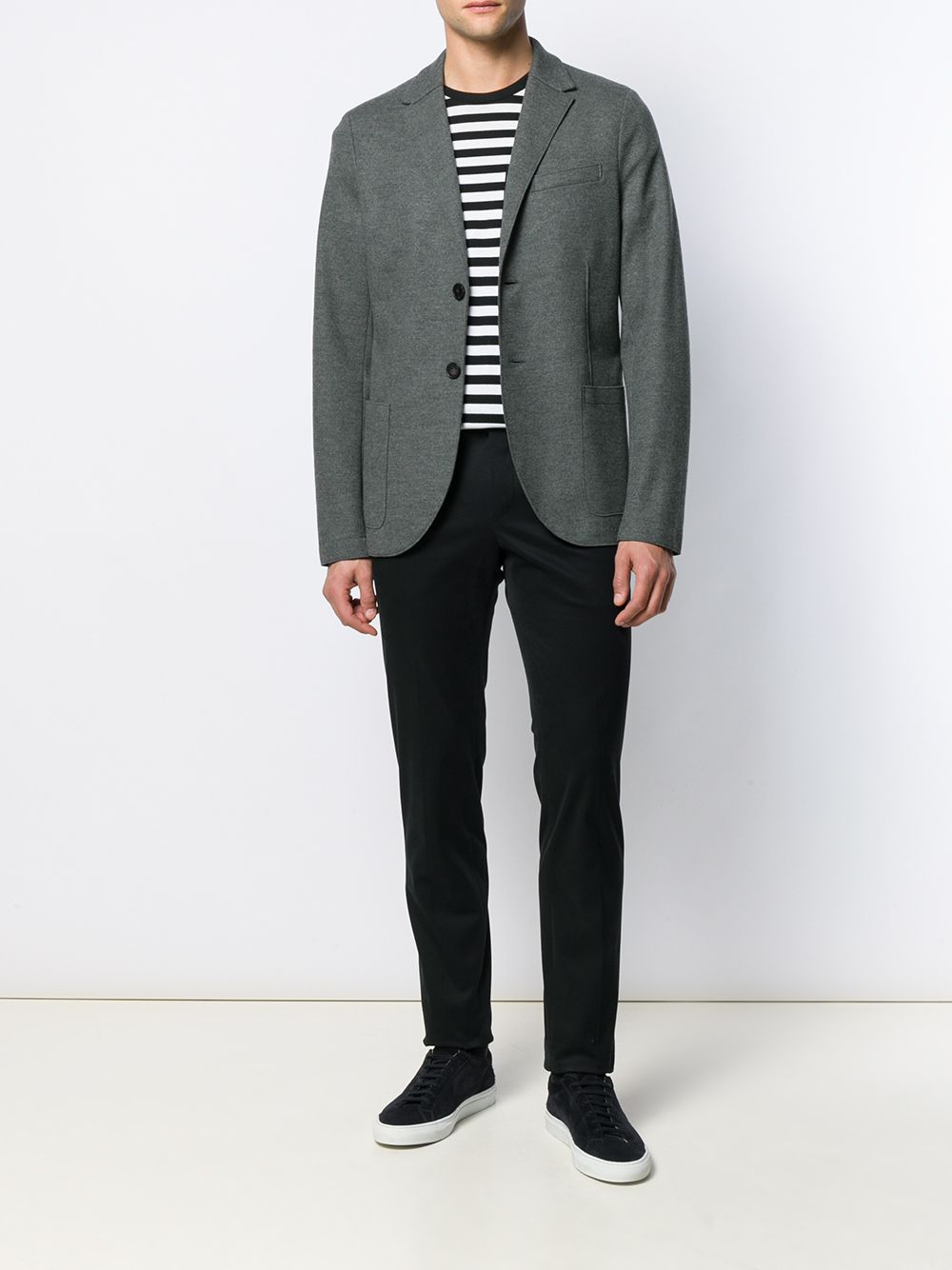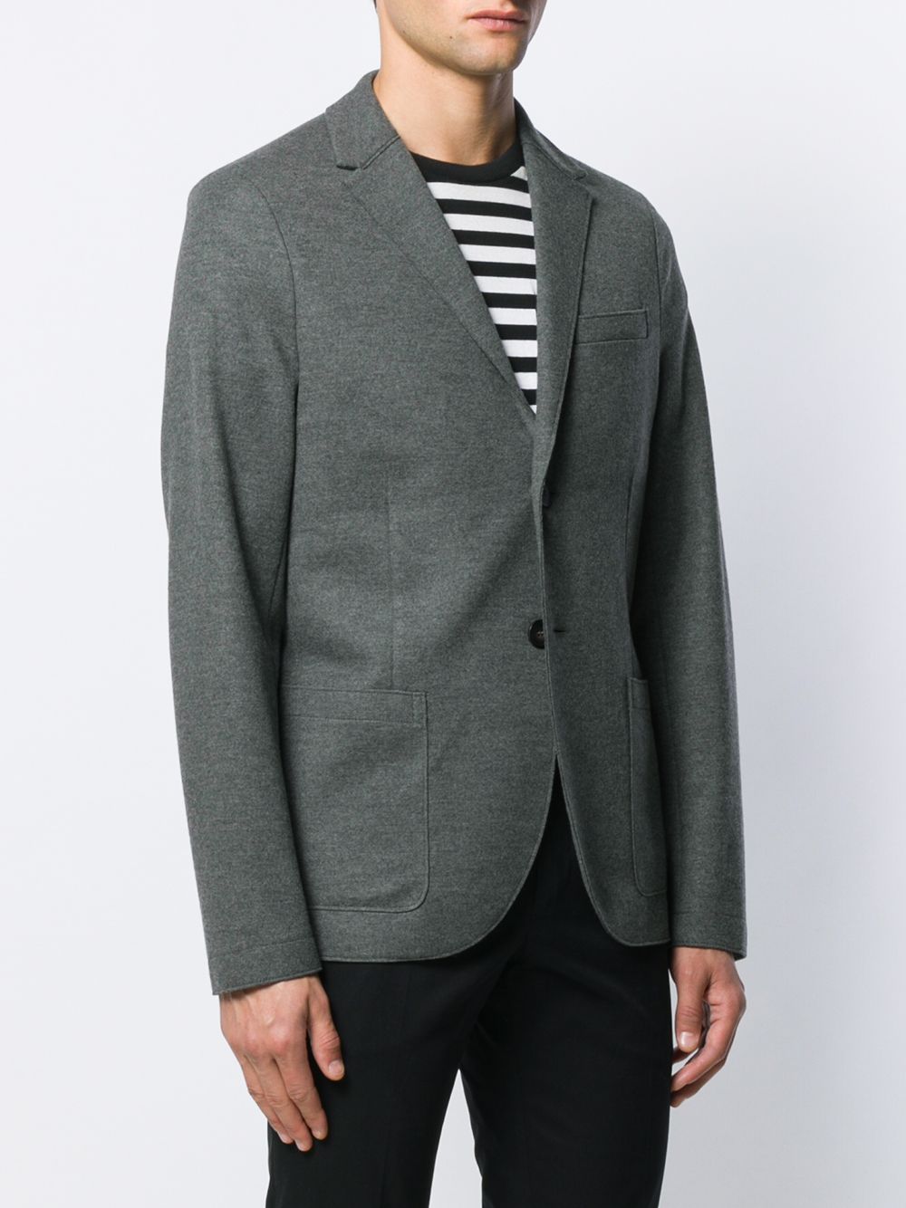 giacca, due bottoni, revers classico , chiusura con bottoni, tasche laterali applicate, taschino, sfoderata Composizione: 100% lana vergine Istruzioni per il lavaggio: lavare a secco