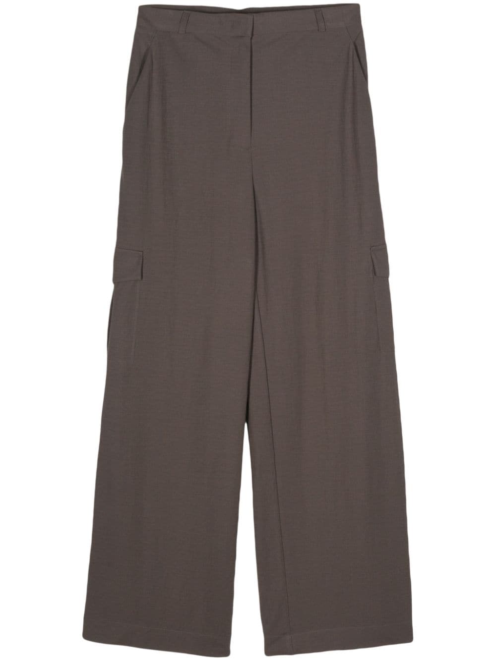pantalone, modello cargo, gamba larga, tasche laterali, tasche laterali con pattina su gambe, chiusura con gancio e zip, passanti per cintura, colore marrone chiaro Composizione: 57% viscosa 43% poliammide Istruzioni per il lavaggio: lavare a secco