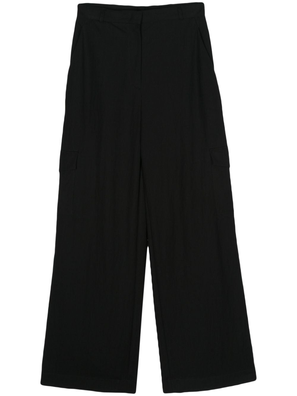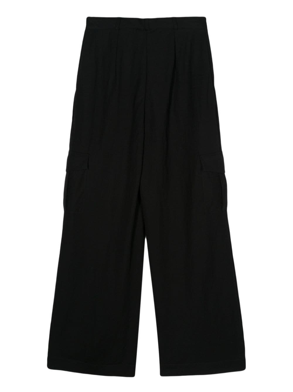 pantalone, modello cargo, gamba larga, tasche laterali, tasche laterali con pattina su gambe, chiusura con gancio e zip, passanti per cintura, colore marrone chiaro Composizione: 57% viscosa 43% poliammide Istruzioni per il lavaggio: lavare a secco
