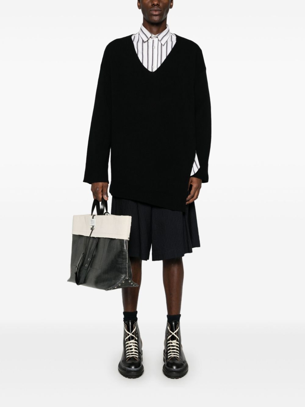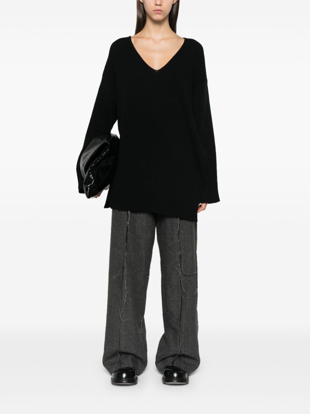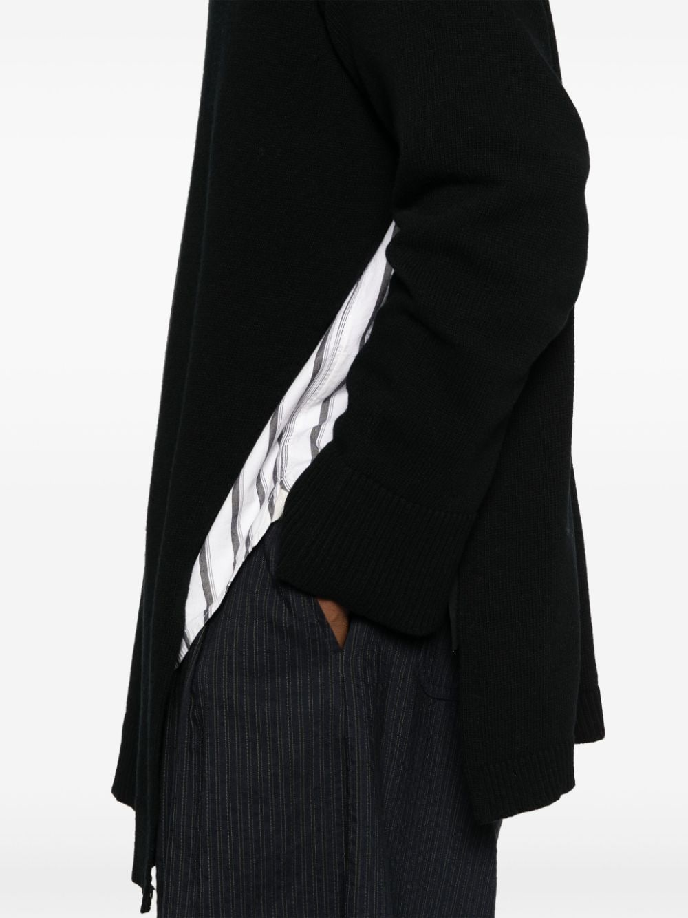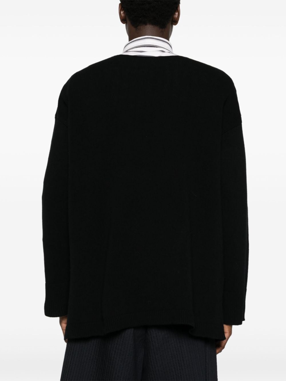 maglia, scollo a v, maniche lunghe , spacco laterale con decoro bottone e nastro con logo Composizione: 100% lana vergine Istruzioni per il lavaggio: lavare a mano