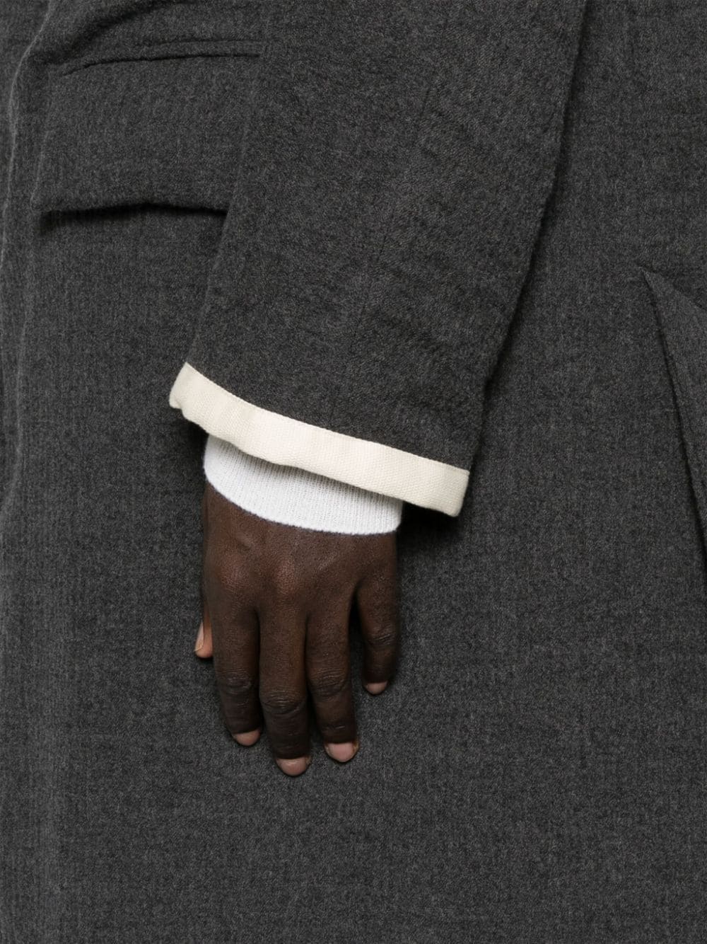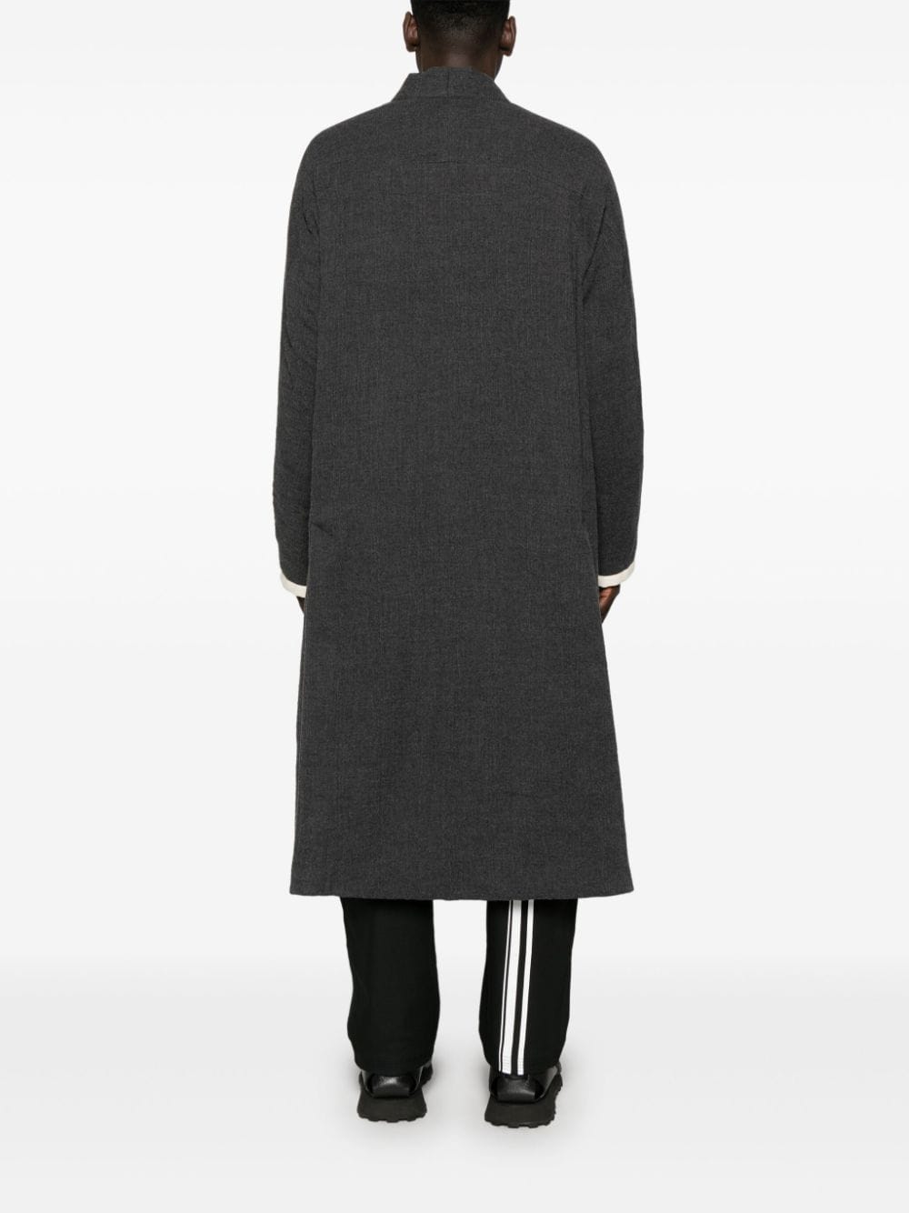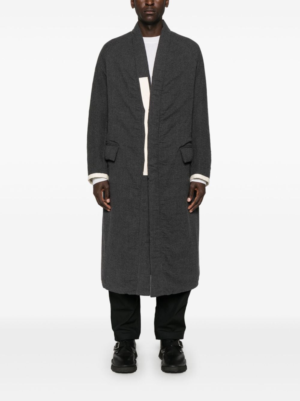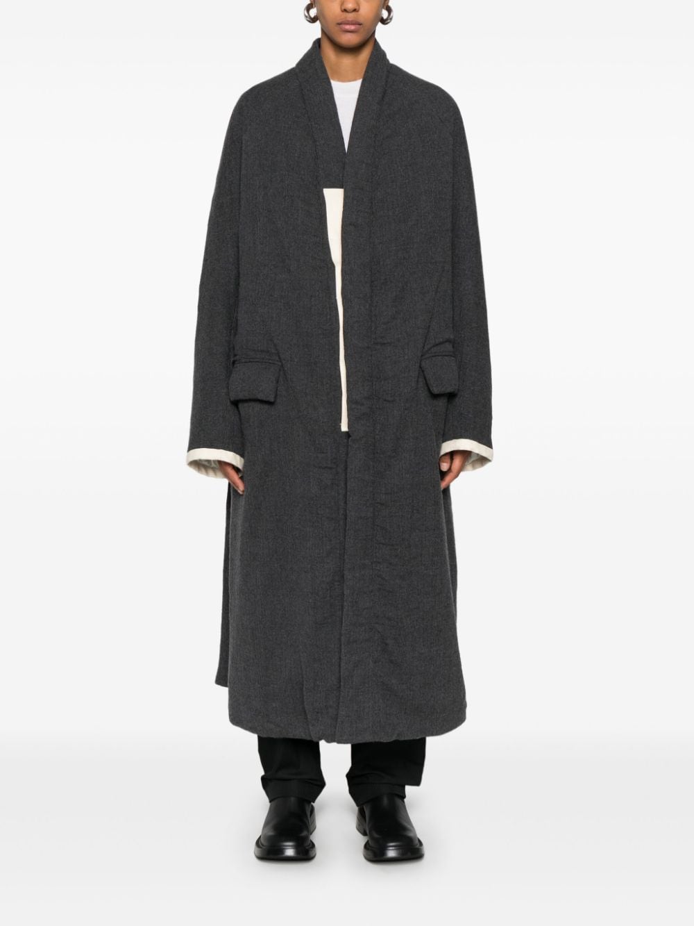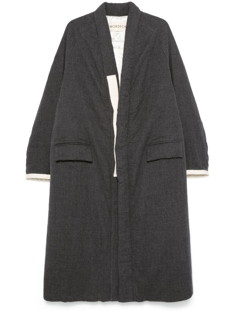 cappotto, imbottito sintetico, scollo a v, chiusura con bottoni cuciti su nastro di gros grain, tasche laterali con pattine, pakka raglan, manica lunga, foderato, spacco posteriore, tasca interna con bottone Composizione: 100% lana vergine Istruzioni per il lavaggio: lavare a secco