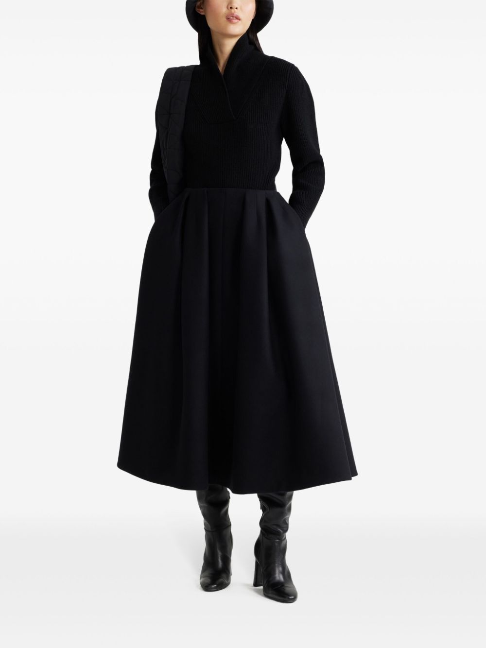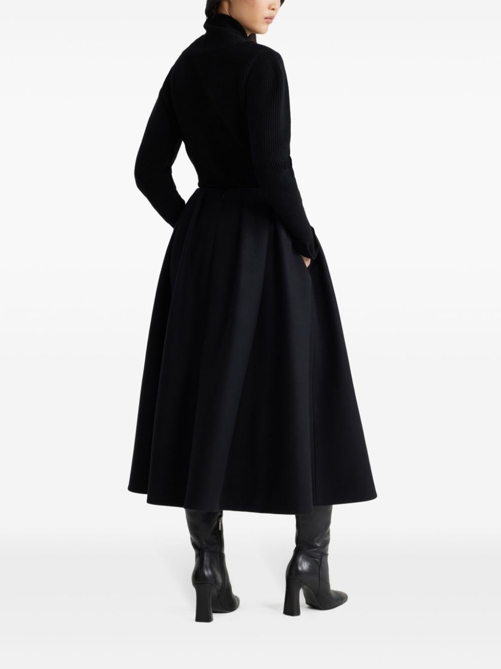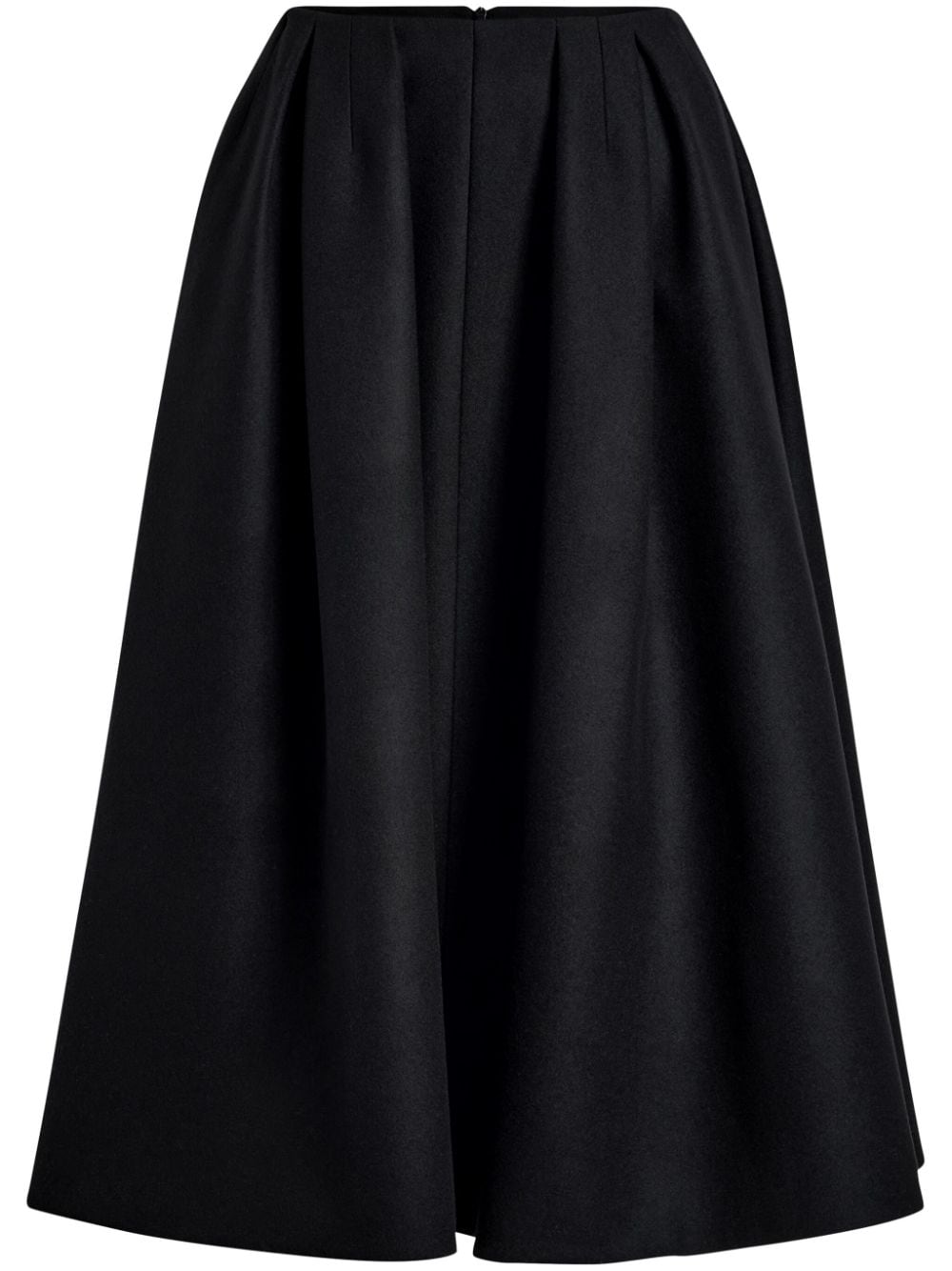gonna midi, ampio volume con pieghe, panno pesante, chiusura con zip posteriore, tasche laterali, foderata Composizione: 90% lana vergine 10% cashmere Istruzioni per il lavaggio: lavare a secco
