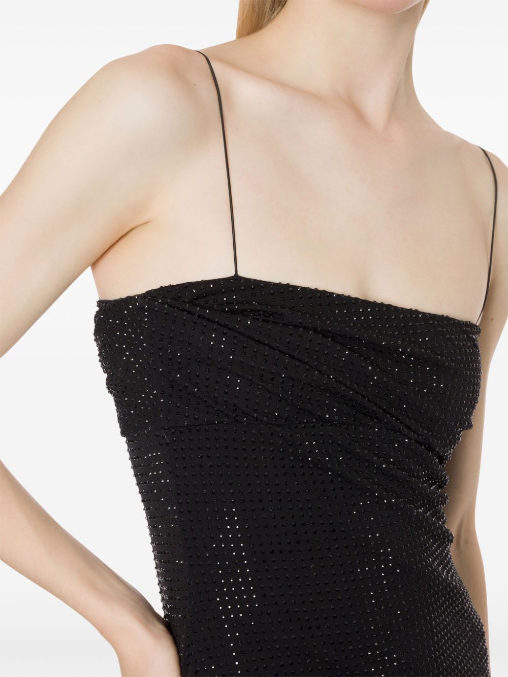 abito a tubino, bretelle sottili, tessuto con cristalli all over, foderato