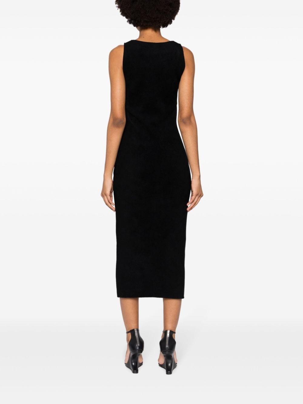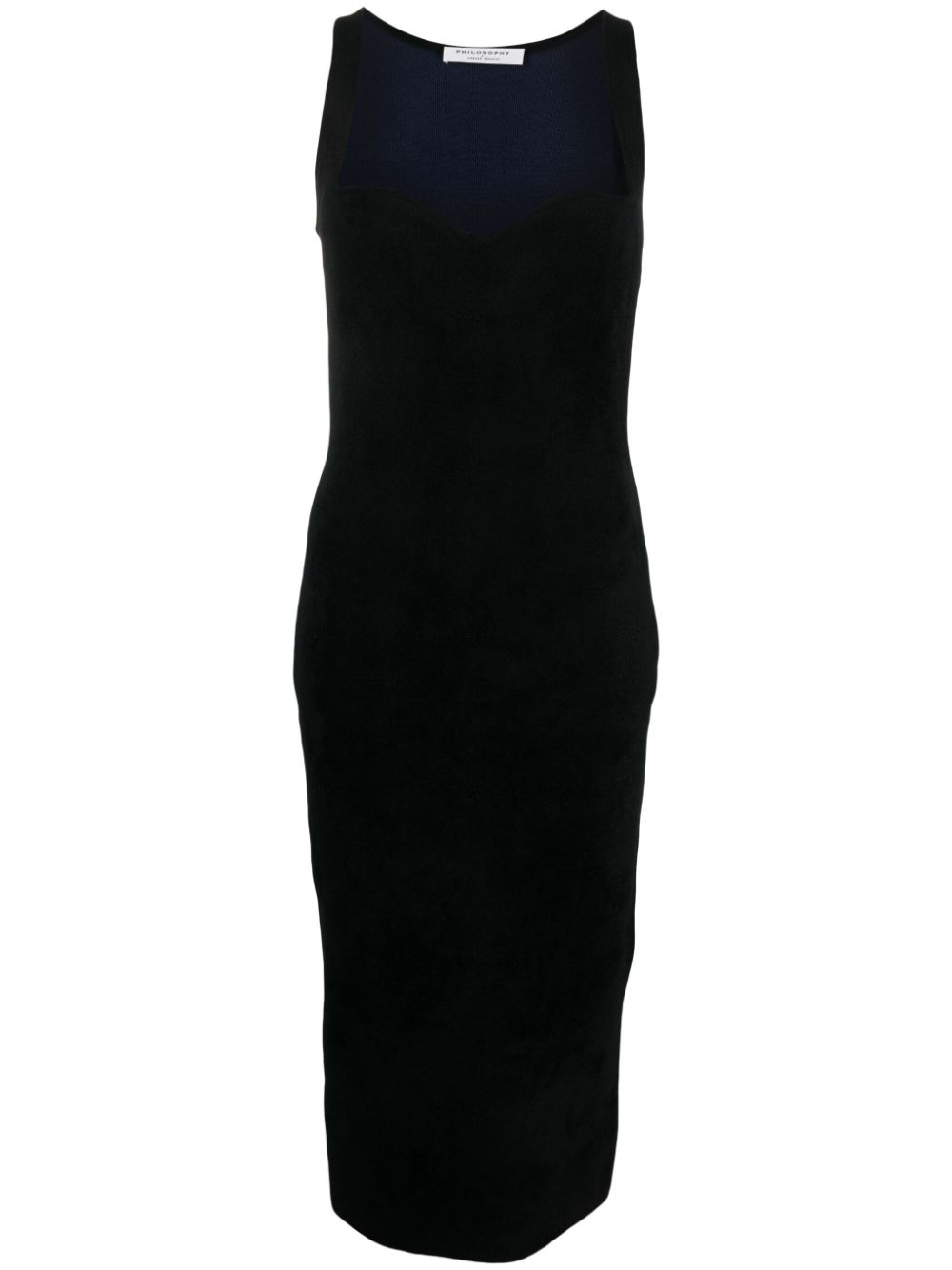 abito, jersey di ciniglia, colore nero blu, senza maniche, scollo ampio, vestibilità slim, chiusura con zip laterale Composizione: 52% viscosa 48% poliammide Istruzioni per il lavaggio: lavare a mano