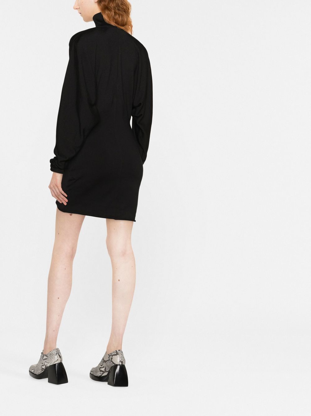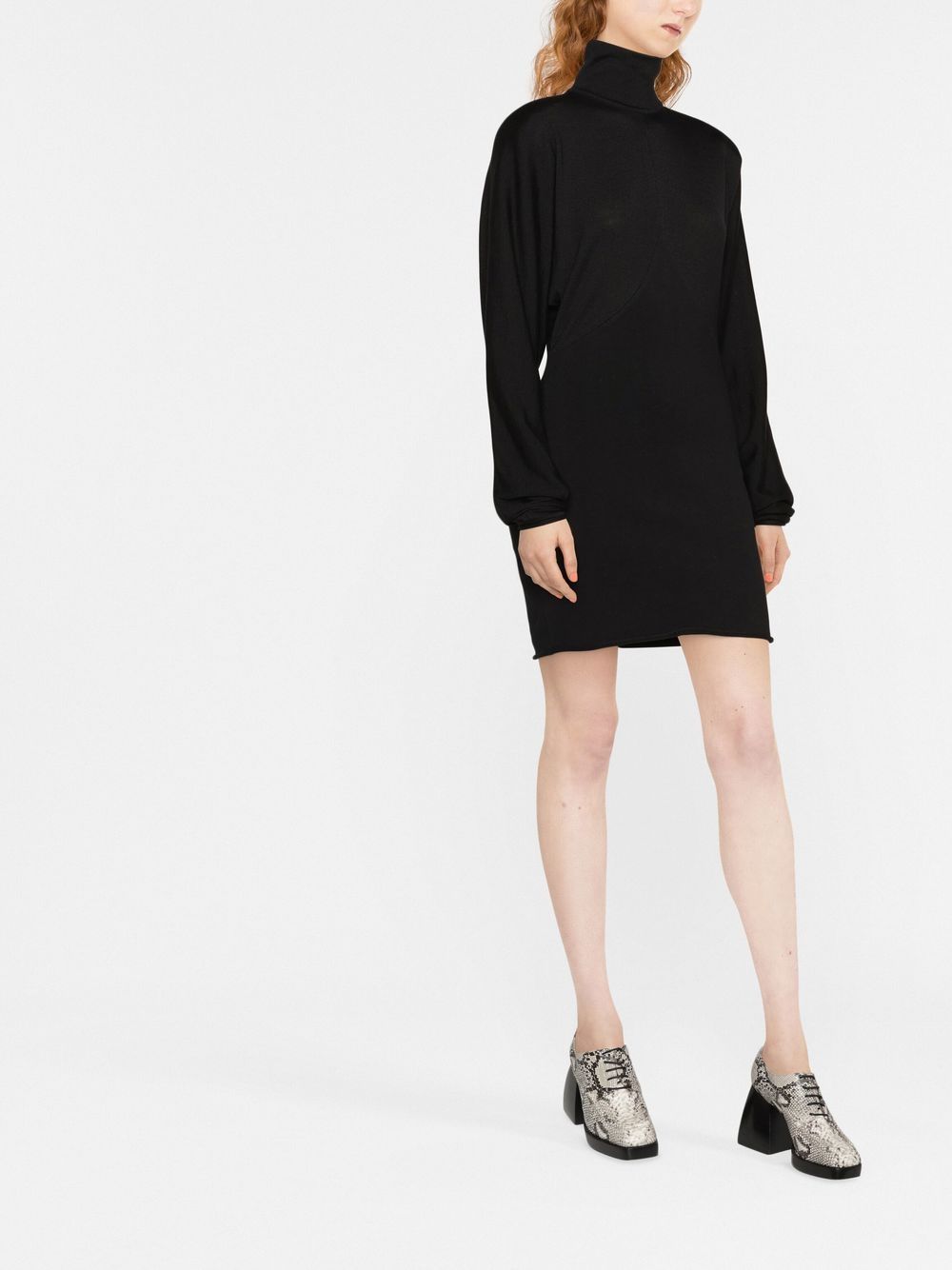 abito corto, maglia, collo alto, spalline, zip posteriore, manica lunga a pipistrello, top in maglia sottile, bottom in maglia stretch, sfoderato, bordo rollato su manica e fondo Composizione: 50% lana 50% lyocell , 92% poliammide 8% elastane Istruzioni di lavaggio: lavare a mano o a secco