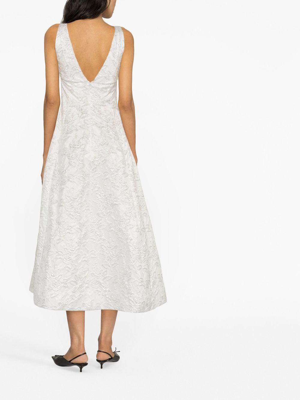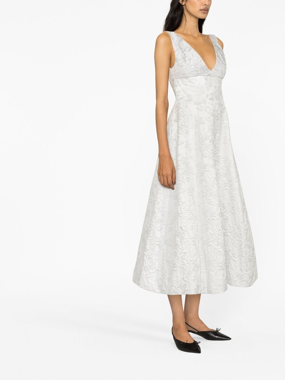 abito midi, tessuto jaquard, motivo floreale, scollo a V, fondo svasato, sfoderato, tasche, zip posteriore