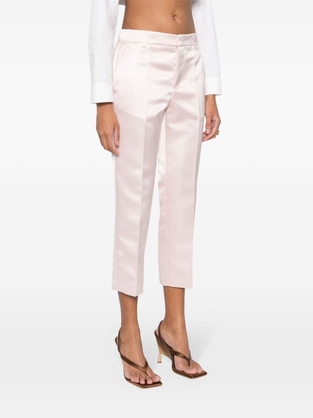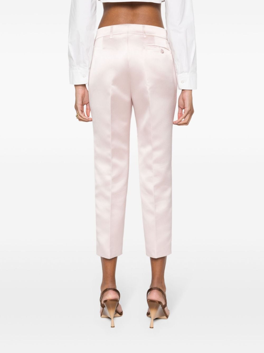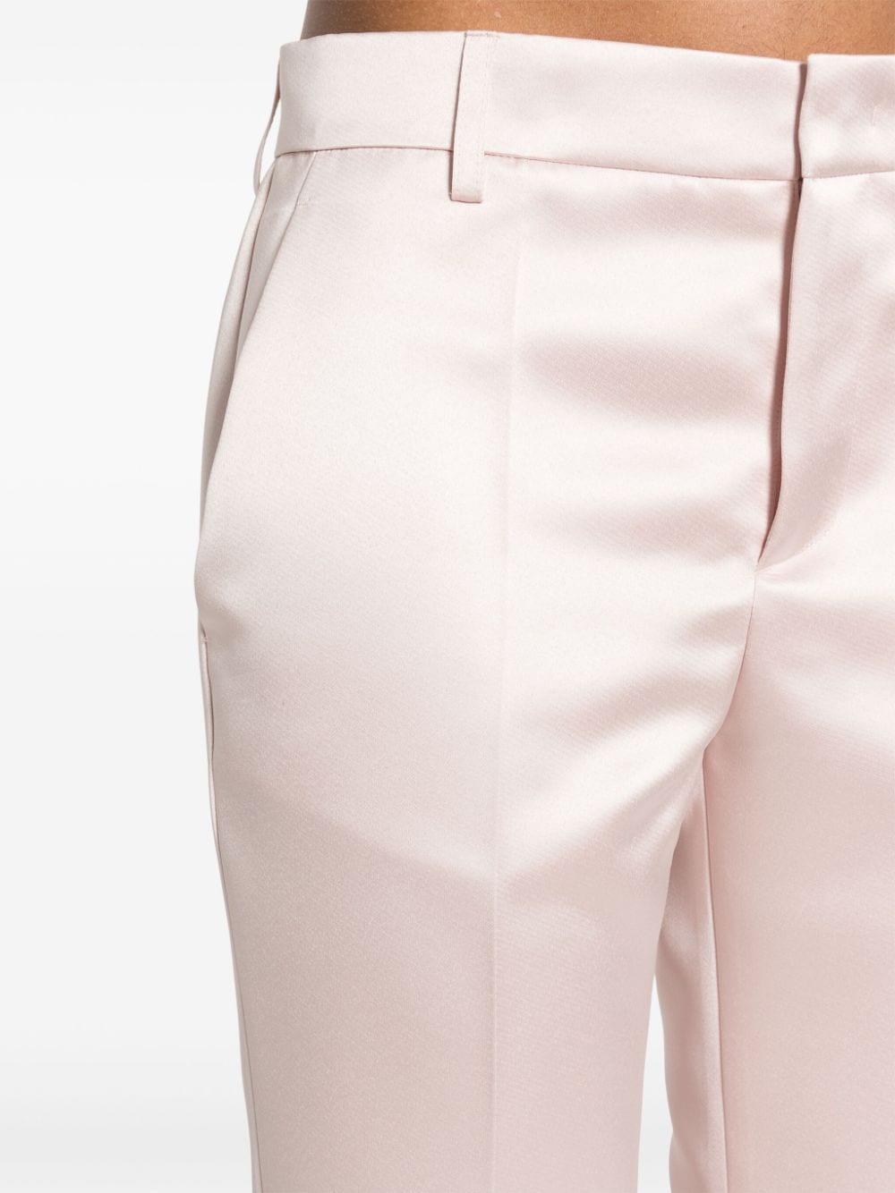 pantalone, gamba diritta, corto alla caviglia, tessuto duchesse, chiusura con zip e gancio, passanti per cintura, tasche laterali, tasca posteriore, colore rosa chiaro Composizione: 100% poliestere Istruzioni per il lavaggio: lavare a mano