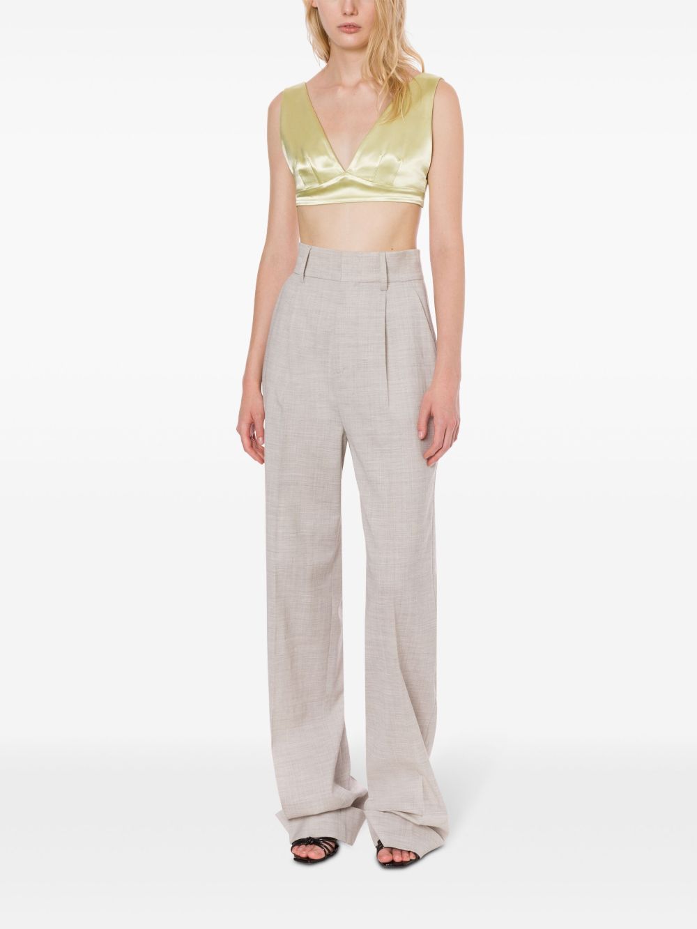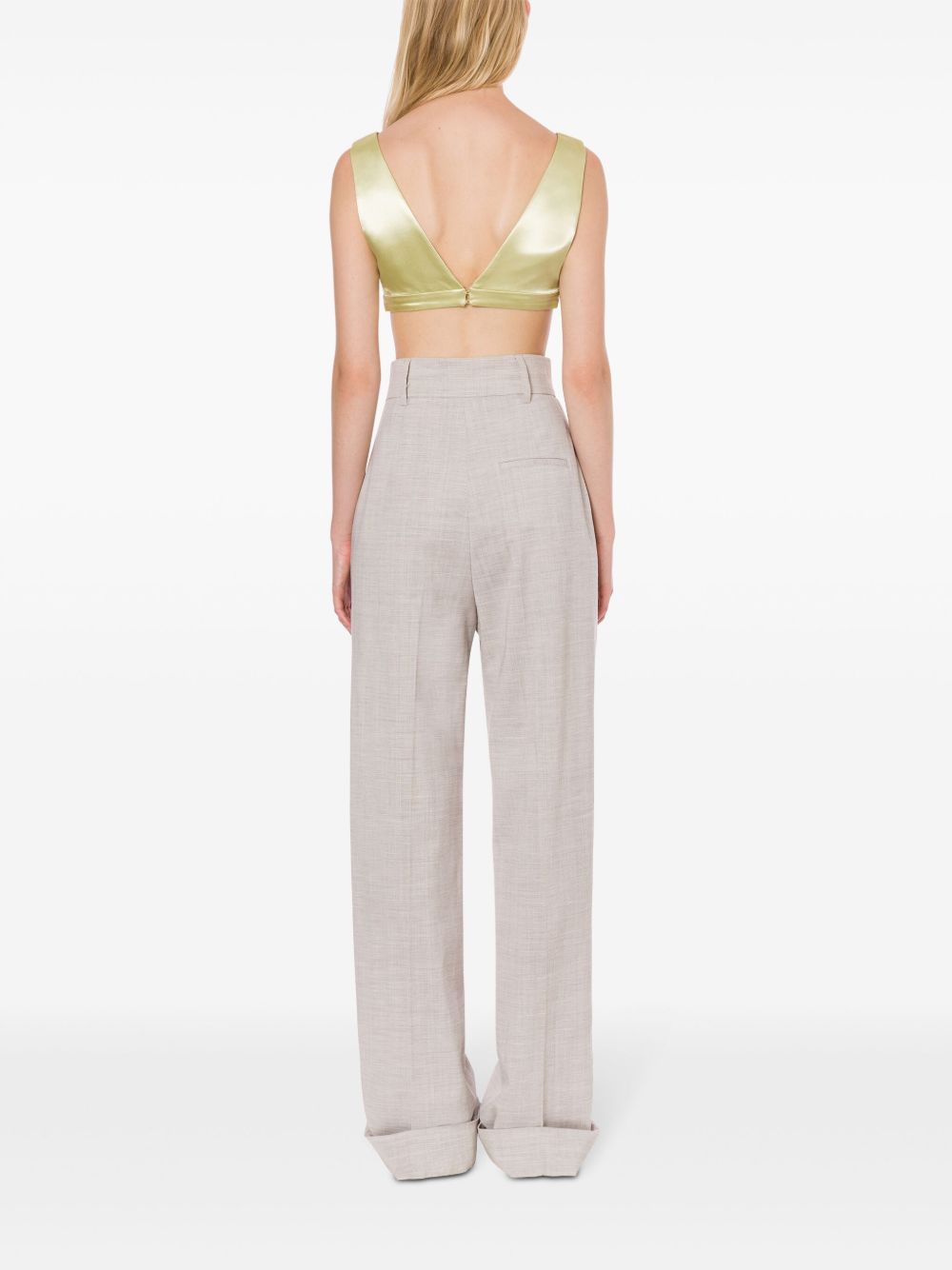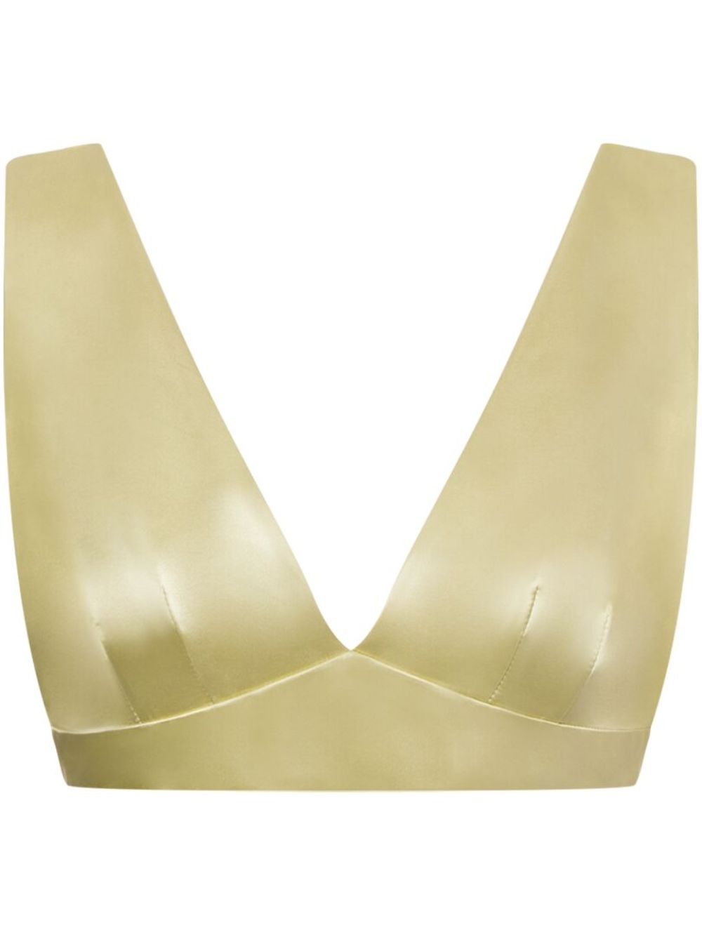top bralette, satin lucido, scollo a v, chiusura posteriore con ganci, foderato