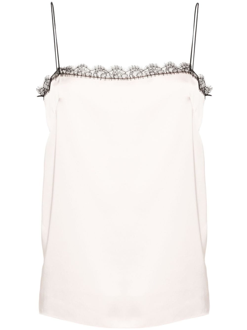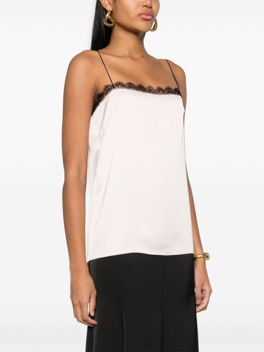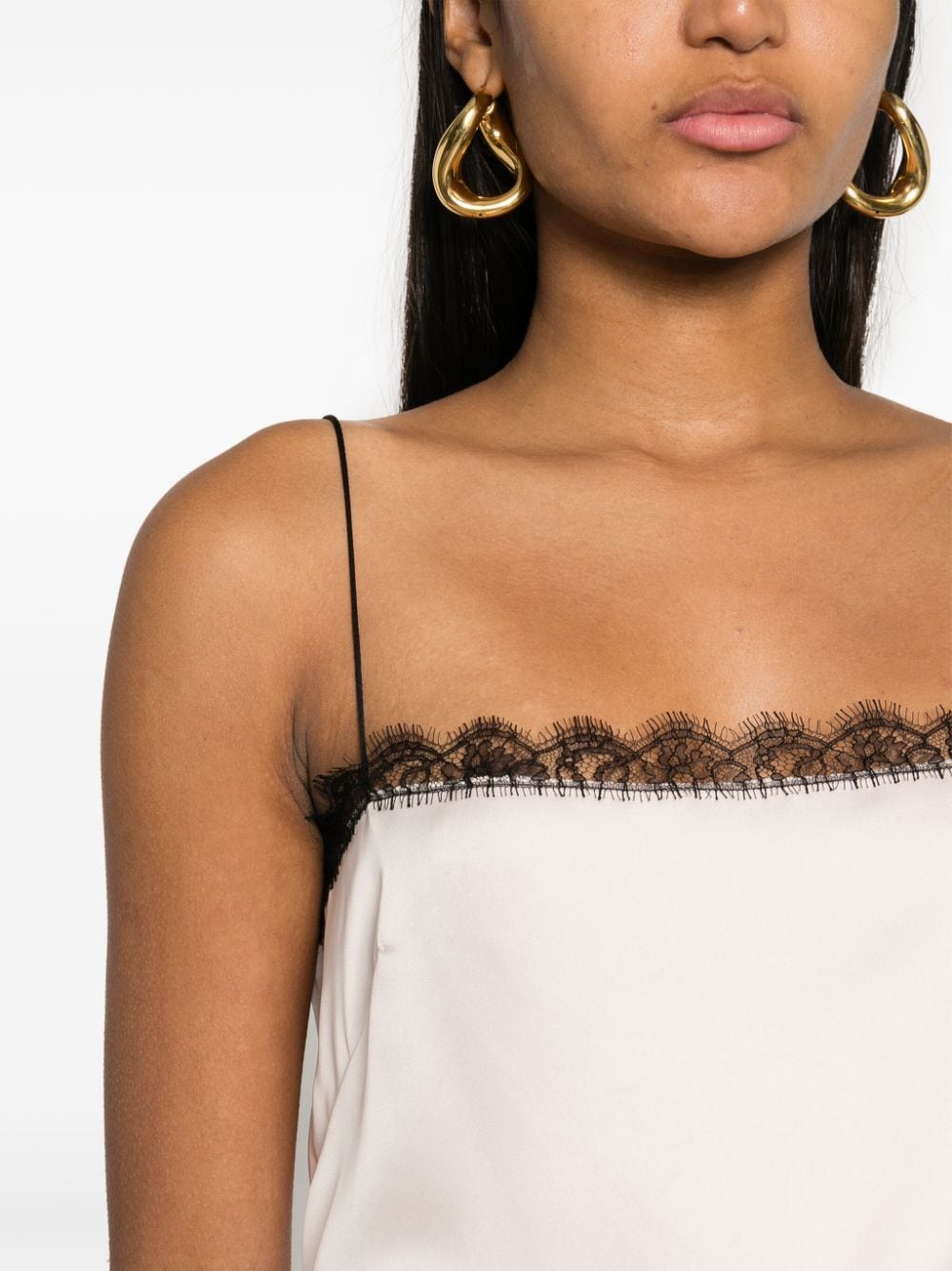 top , bretelline, satin, bordo scollo con pizzo a contrasto, rosa blush