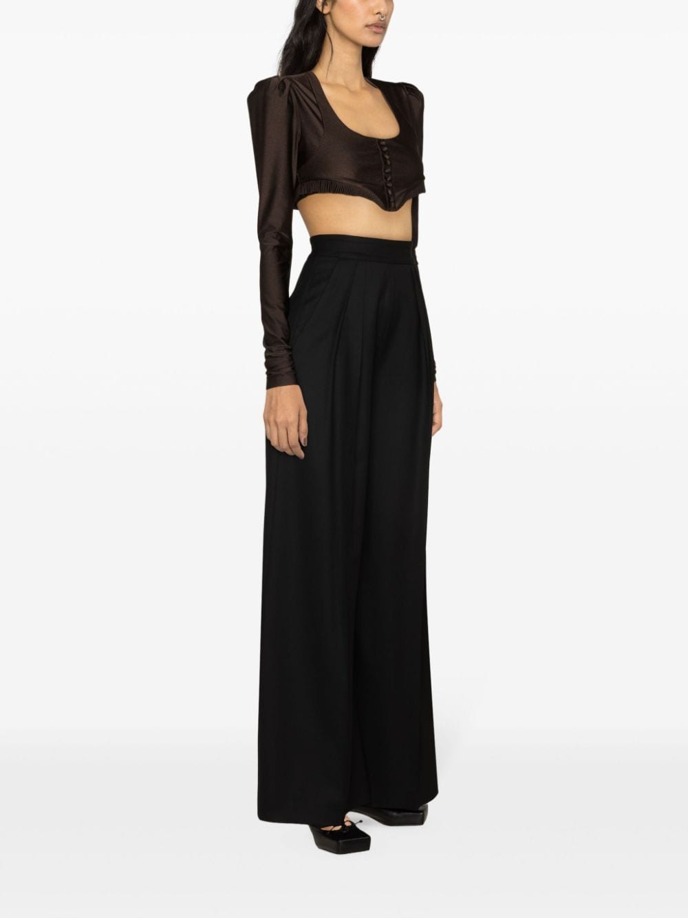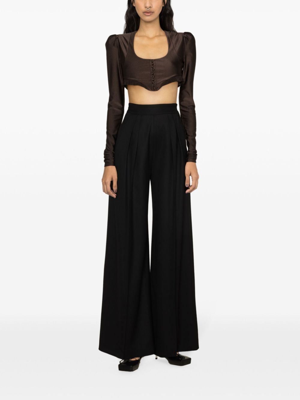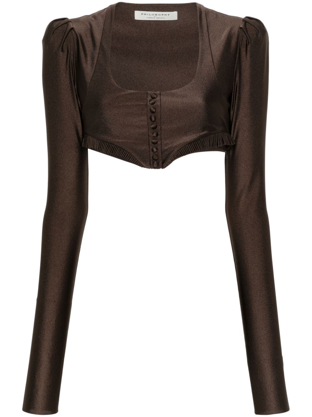 top , modello crop, jersey, manica lunga, spalla con arriccio, spalline, scollatura ovale, bordo con micro plissé, chiusura laterale con zip Composizione: 100% poliestere Istruzioni per il lavaggio: lavare a secco
