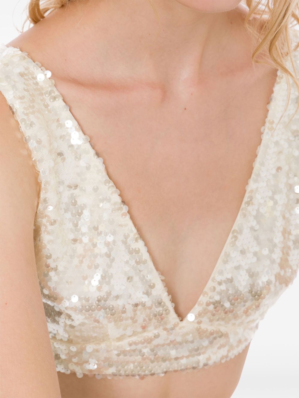 top bralette, paillettes, scollo a v, chiusura posteriore con gancetti, foderato Composizine: 95% poliestere, 5% elastane Istruzioni per il lavaggio: lavare a secco