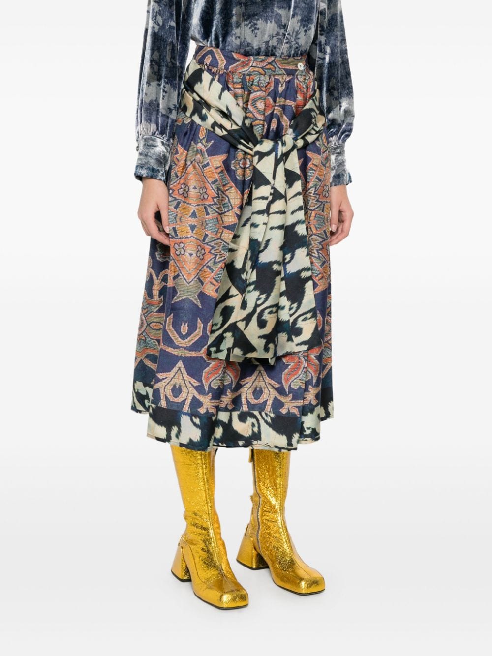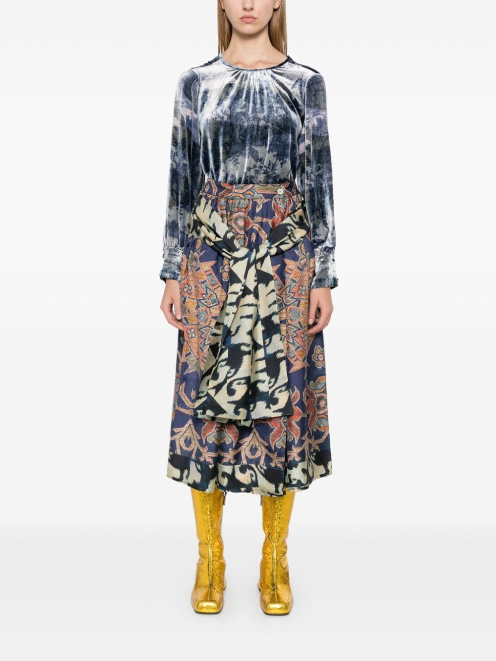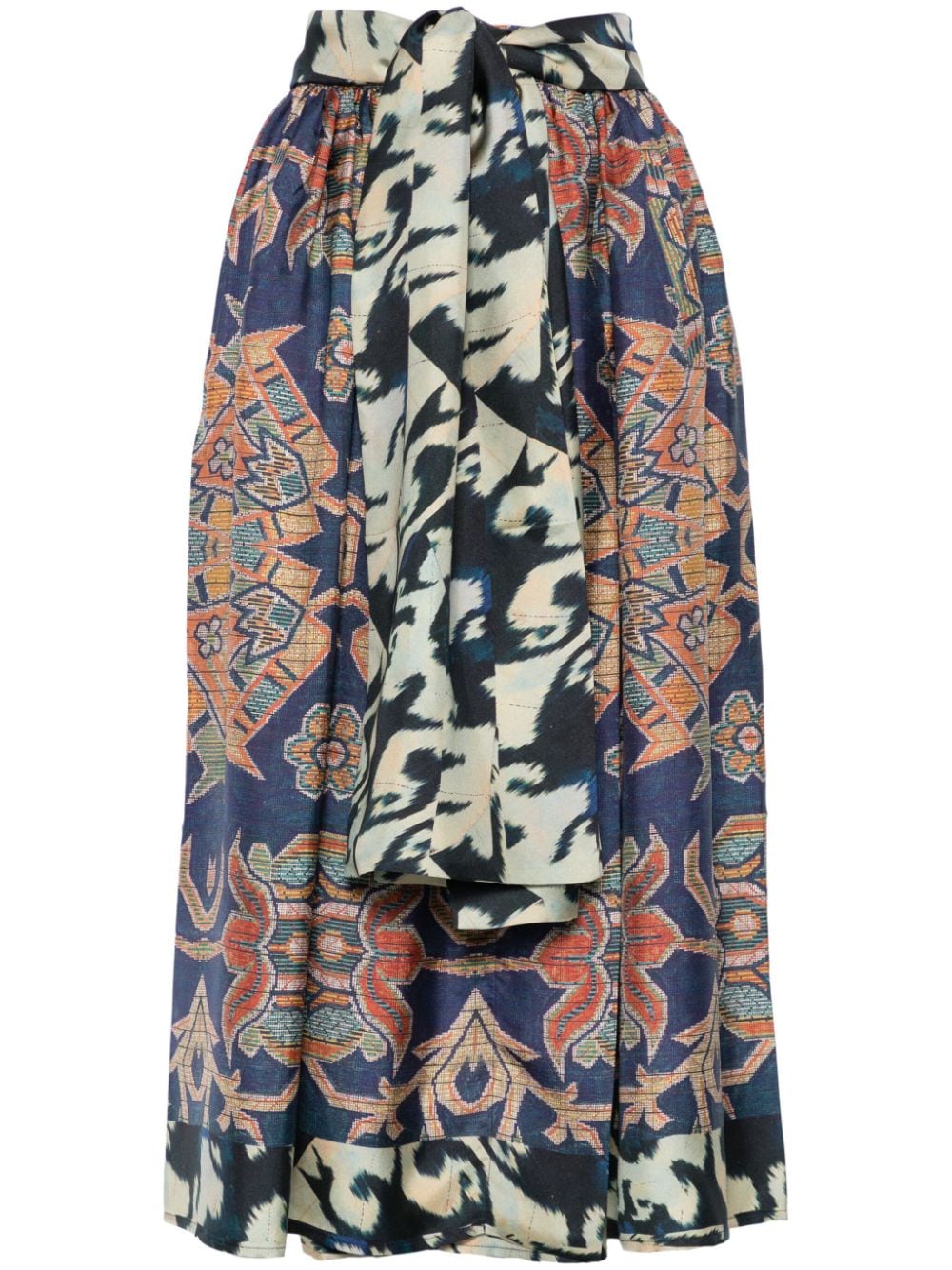 gonna midi, design a portafoglio, arriccio in vita, chiusura con bottoni, stampa all over, cintura in tessuto a contrasto, tasche laterali Composizione: 100% seta Istruzioni per il lavaggio: lavare solo a secco