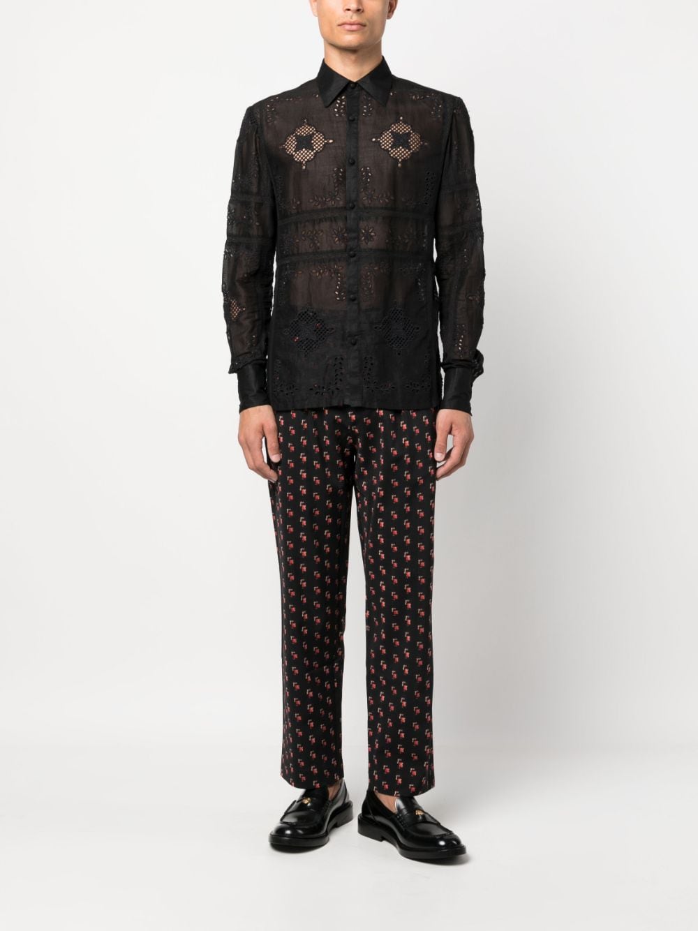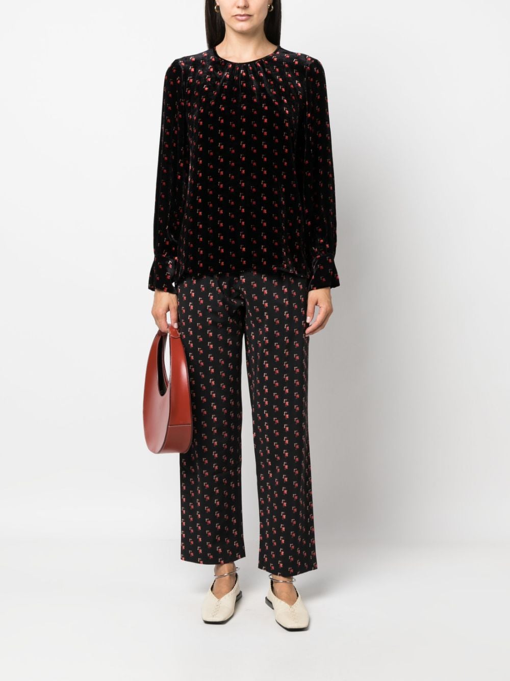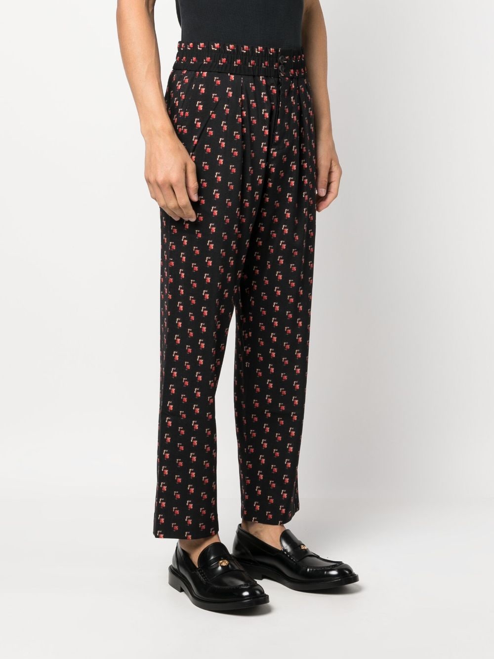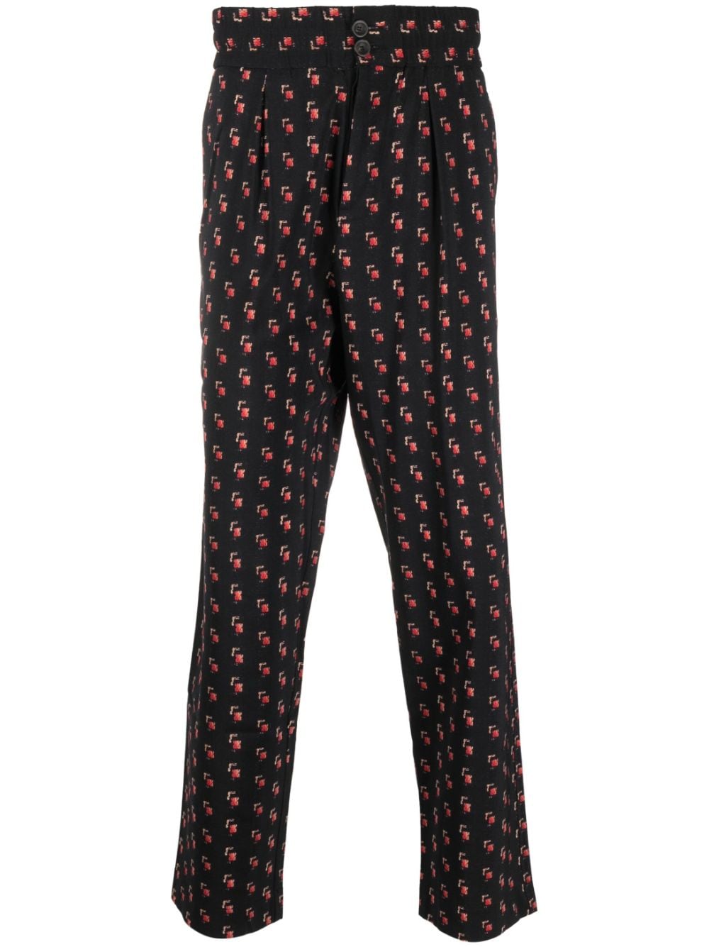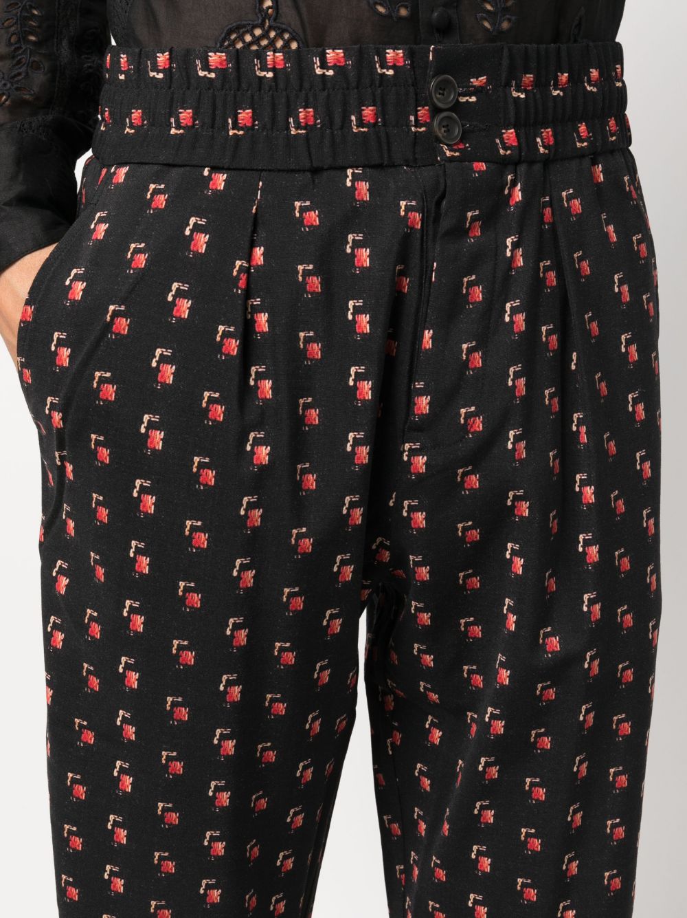 pantalone, fantasia all over, pences, chiusura con bottone e zip Composizione: 77% lana , 19% poliestere, 4% elastane Istruzioni per il lavaggio: lavare a secco