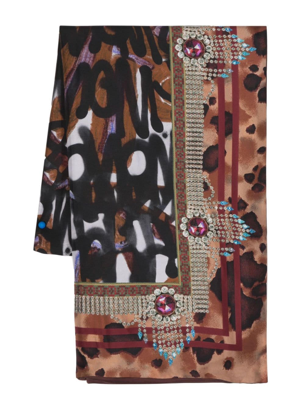 sciarpa, rettangolare, stampa astratta , multicolor, lato opposto tinta unita