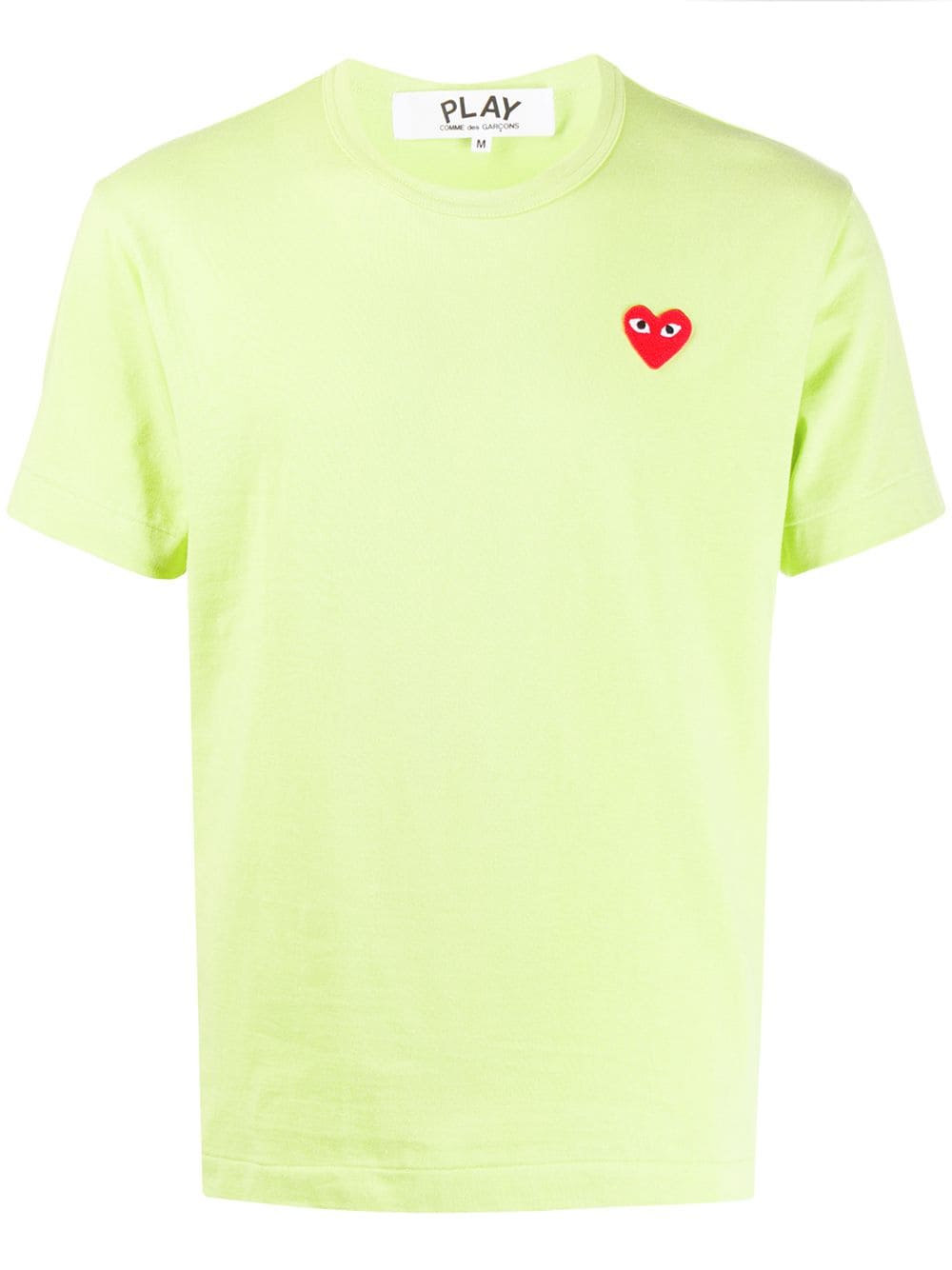 T-shirt girocollo mezza manica in cotone di Comme Des Garçons Play. Colore verde con applicazione logo cuore rosso Composizione Cotone 100% Istruzioni per il lavaggio Lavare a mano