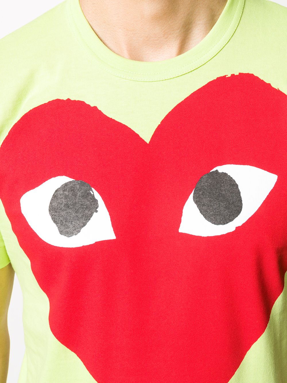 T-shirt girocollo mezza manica in cotone di Comme Des Garçons Play. Colore verde e stampa cuore rosso Composizione Cotone 100% Istruzioni per il lavaggio Lavare a mano
