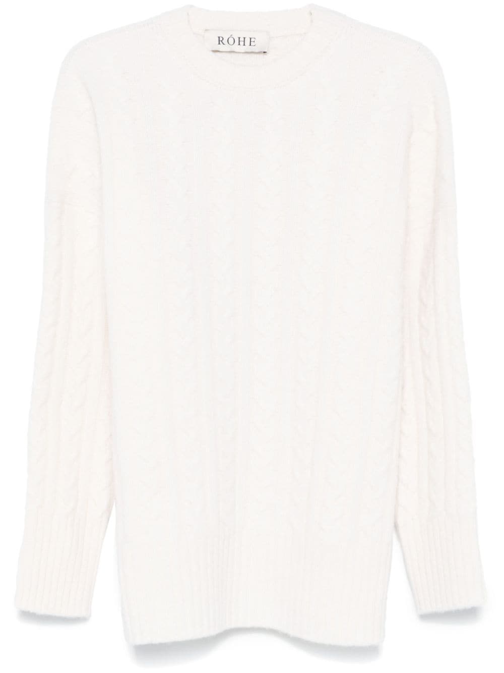 maglione, girocollo, manica lunga, lavorazione a trecce, vestibilità comoda Composizione: 90% lana merino 10% cashmere Istruzioni per il lavaggio: lavare a secco