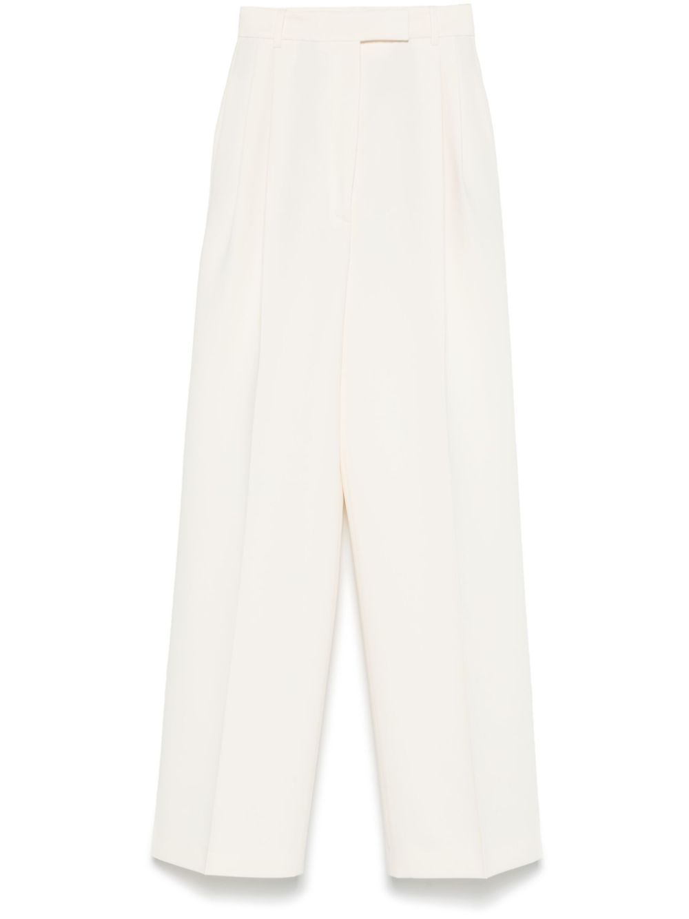 pantalone, chiusura con ganci e zip, passanti per cintura, pences, tasche laterali, tasche posteriori a filo, gamba larga Composizione: 1000% poliestere Istruzioni per il lavaggio: lavare a secco