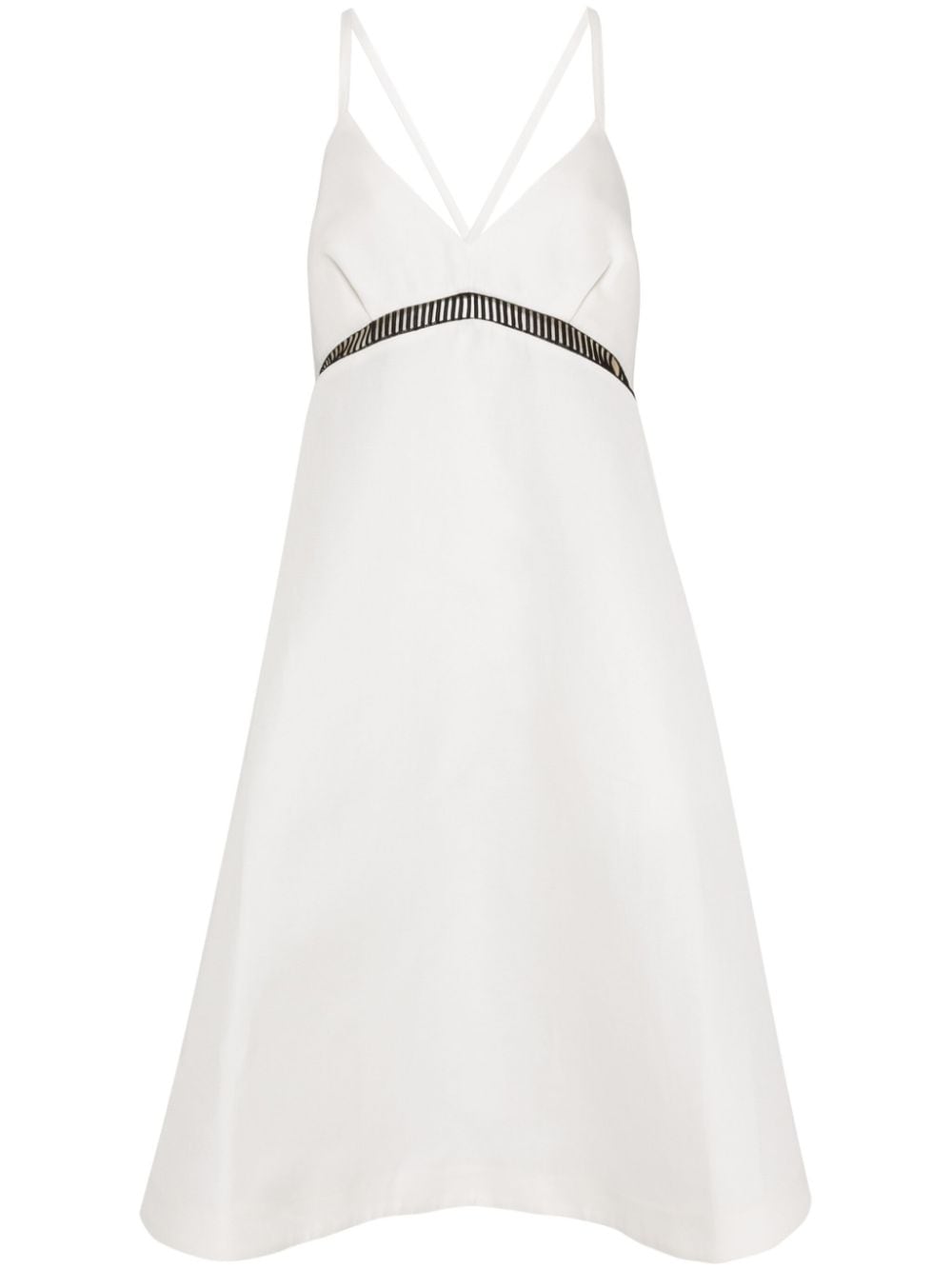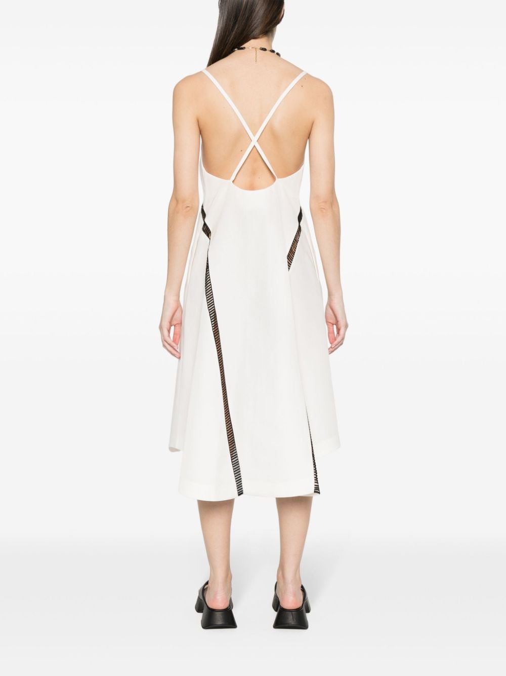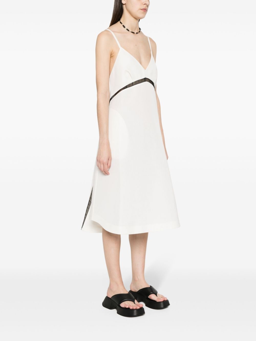 abito, bretelline, fondo svasato, dettaglio con lavorazione à jour in contrasto, tasche laterali a filo, senza fodera Composizione: 54% seta 34% cotone Istruzioni per il lavaggio: lavare a secco