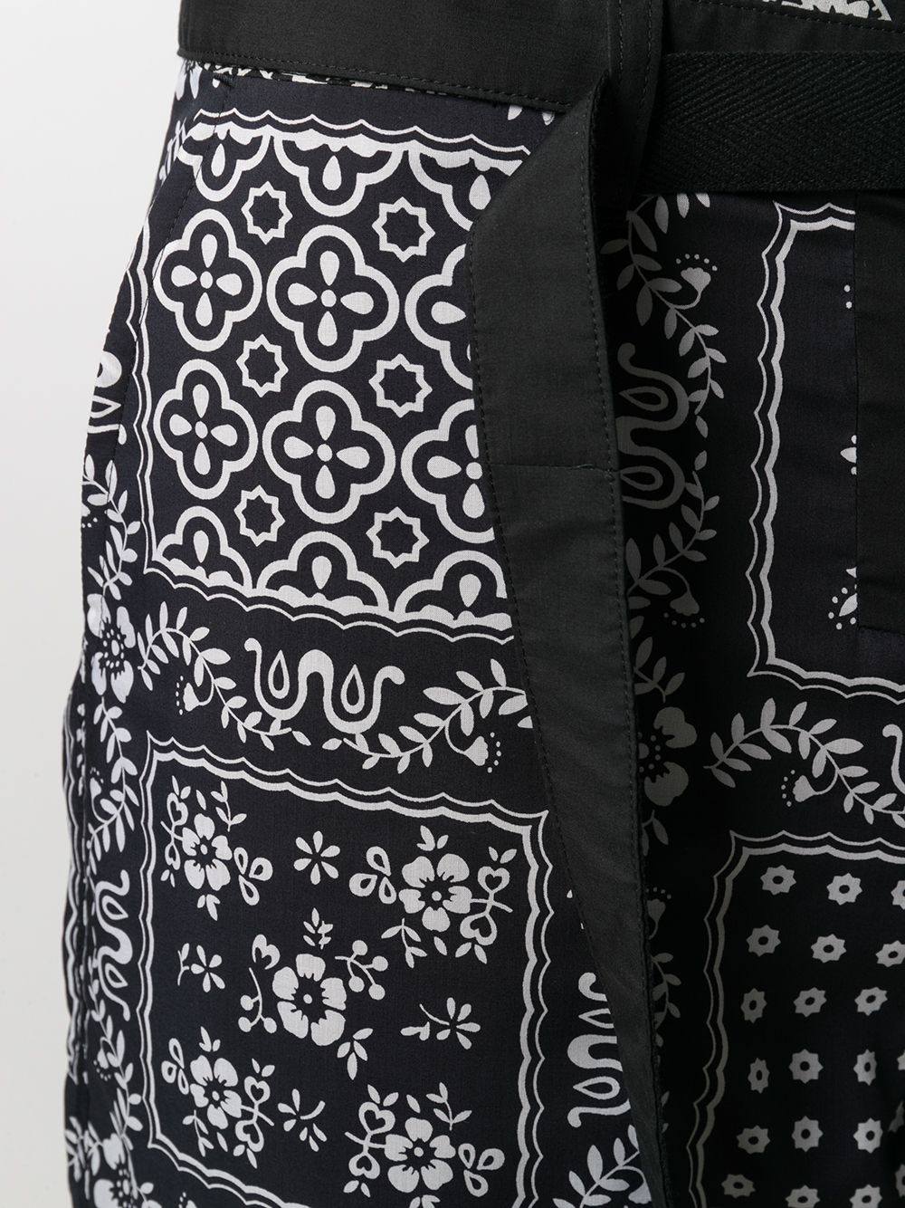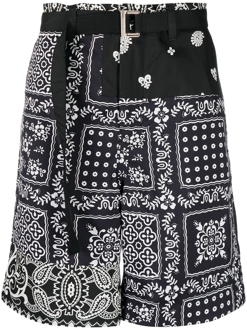 Shorts con stampa e cintura regolabile con fibbia, passanti, chiusura frontale con zip e bottone, due tasche laterali a soffietto e due posteriori con bottoni, una a filetto e l'altra con patta. Composizione Tessuto principale: Poliestere 100% Parti minori: Cotone 100% Fodera: Cupro 100% Istruzioni per il lavaggio Lavare solo a secco
