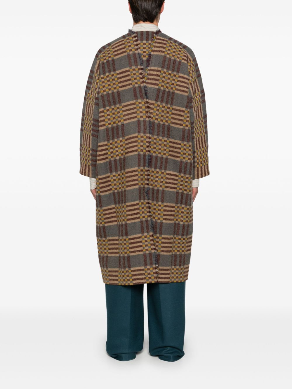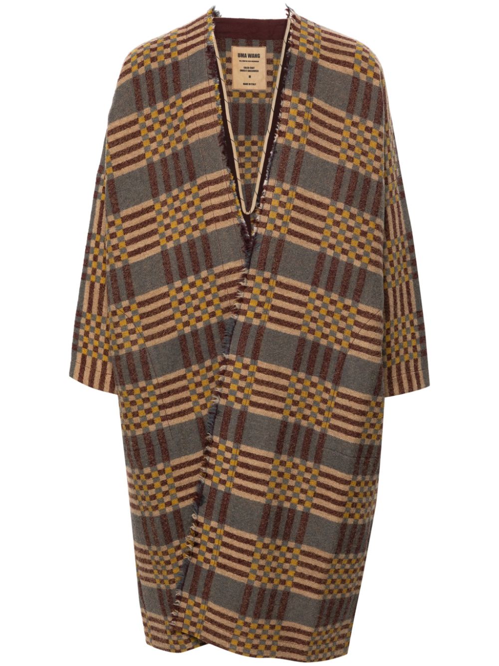 cappotto, design kimono, scollo a v, bordi sfrangiati, tessuto a quadri e righe , sfoderato, tasche laterali a filo, spacco posteriore Composizione: 100% lana vergine Istruzioni per il lavaggio: lavare a mano