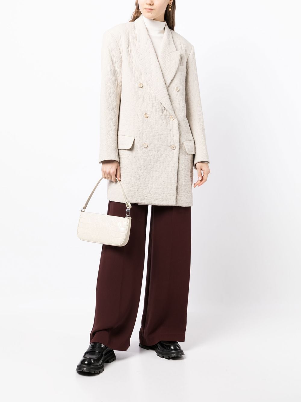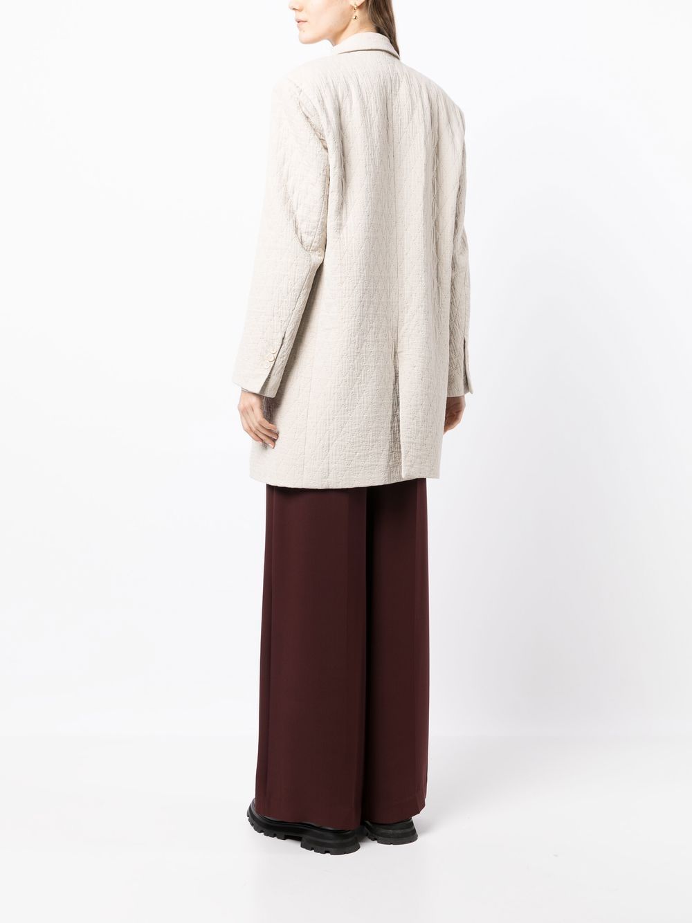giacca, oversize, tessuto trapuntato, doppio petto , revers a lancia, taschino, tasche con pattina, foderata, spacco centrale Composizione: 50% viscosa 50% cupro Istruzioni di lavaggio: lavare a mano o a secco