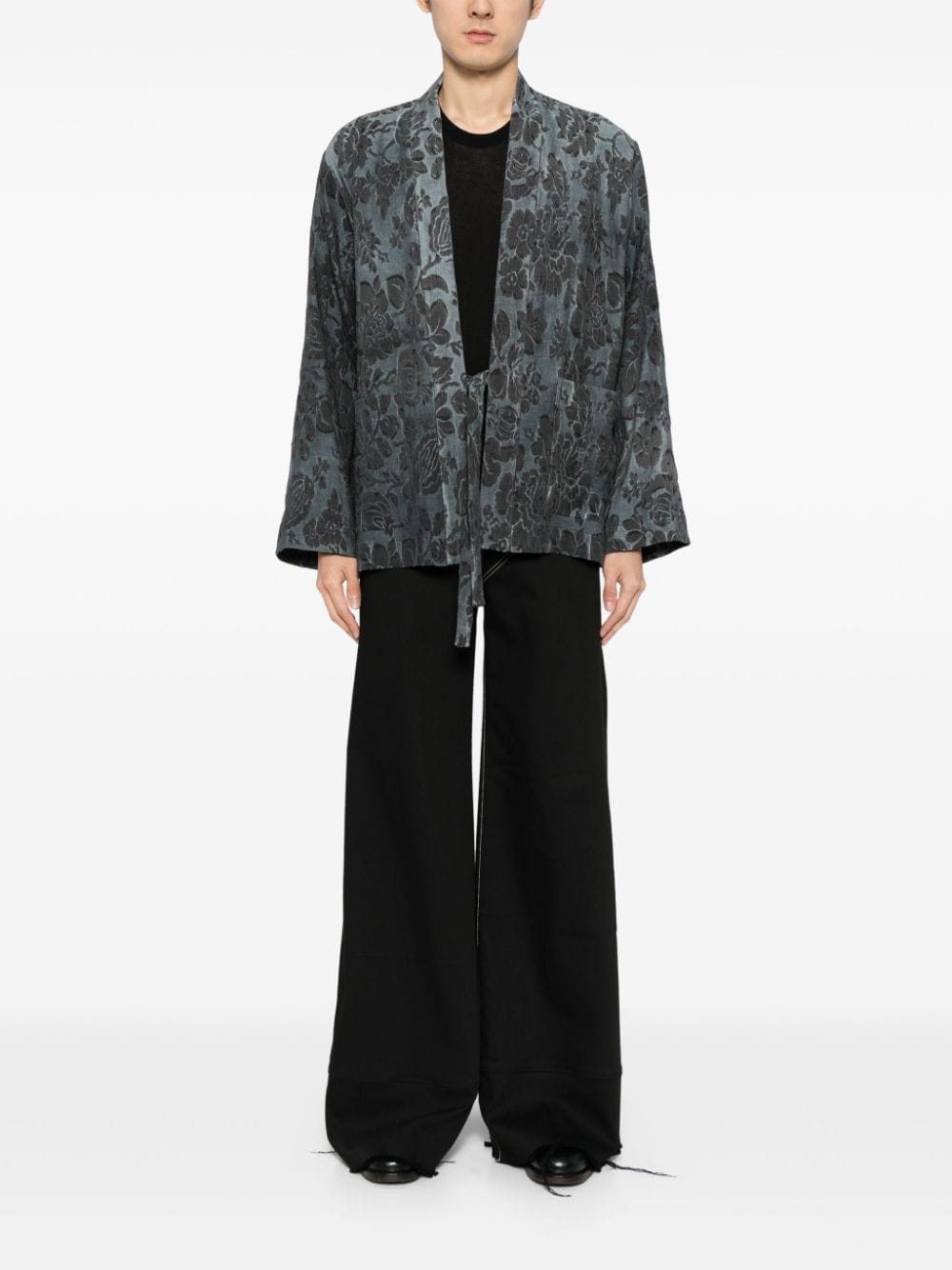 giacca, design kimono, collo sciallato . scollo a v, chiusura con nodo, manica lunga , tasche laterali