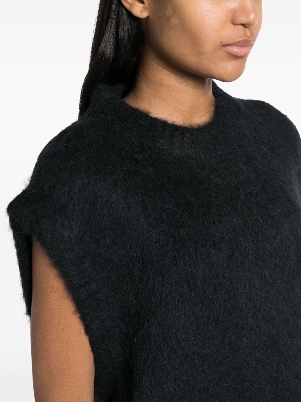 gilé, girocollo, senza maniche, maglia a pelo lungo Composizione: 44% alpaca 26% cammello 18% lana 12% poliamide Istruzioni per il lavaggio: lavare a mano