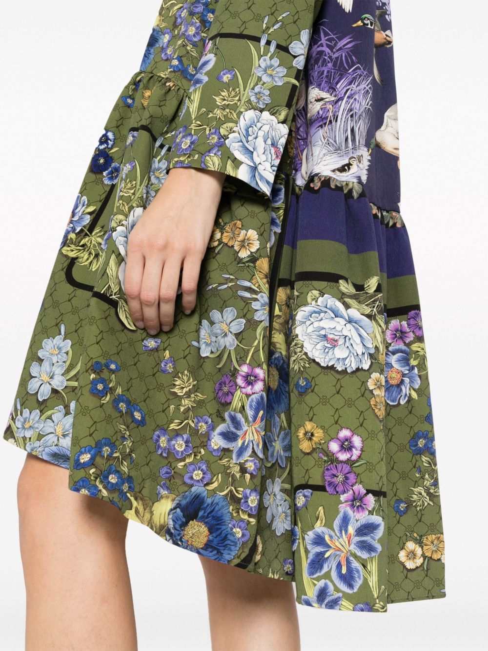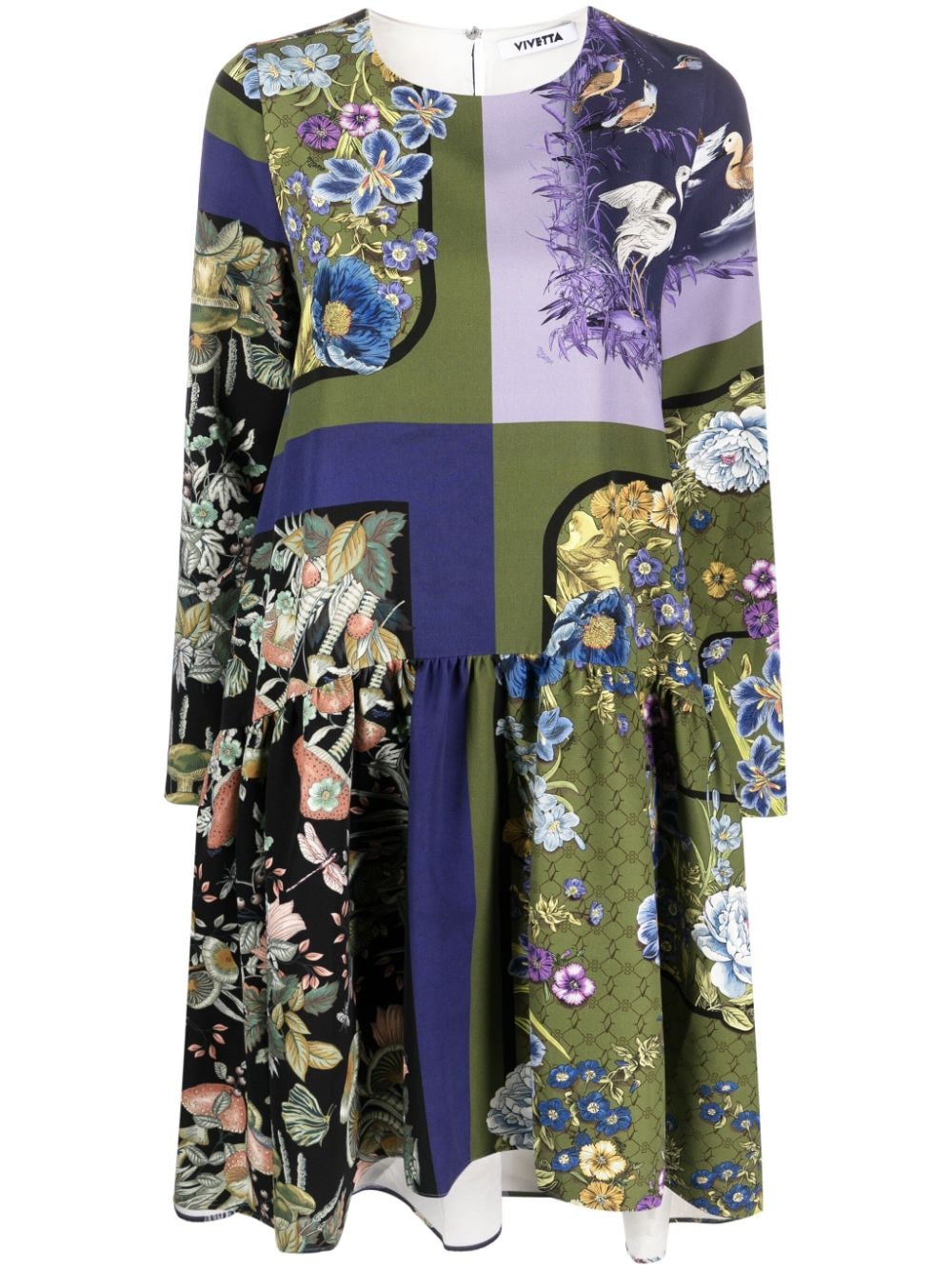 abito, girocollo, manica lunga, fondo arricciato e svasato, stampa di natura all over , chiusura posteriore con bottone Composizione: 89% poliestere 11% elastane Istruzioni per il lavaggio: lavare a secco