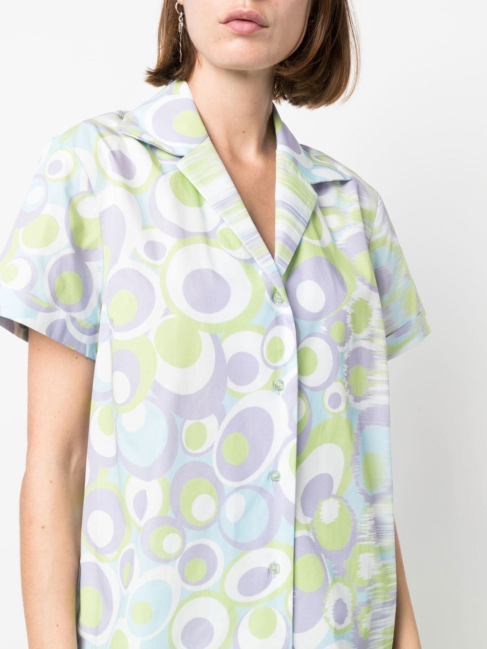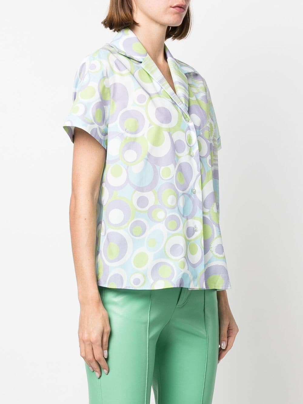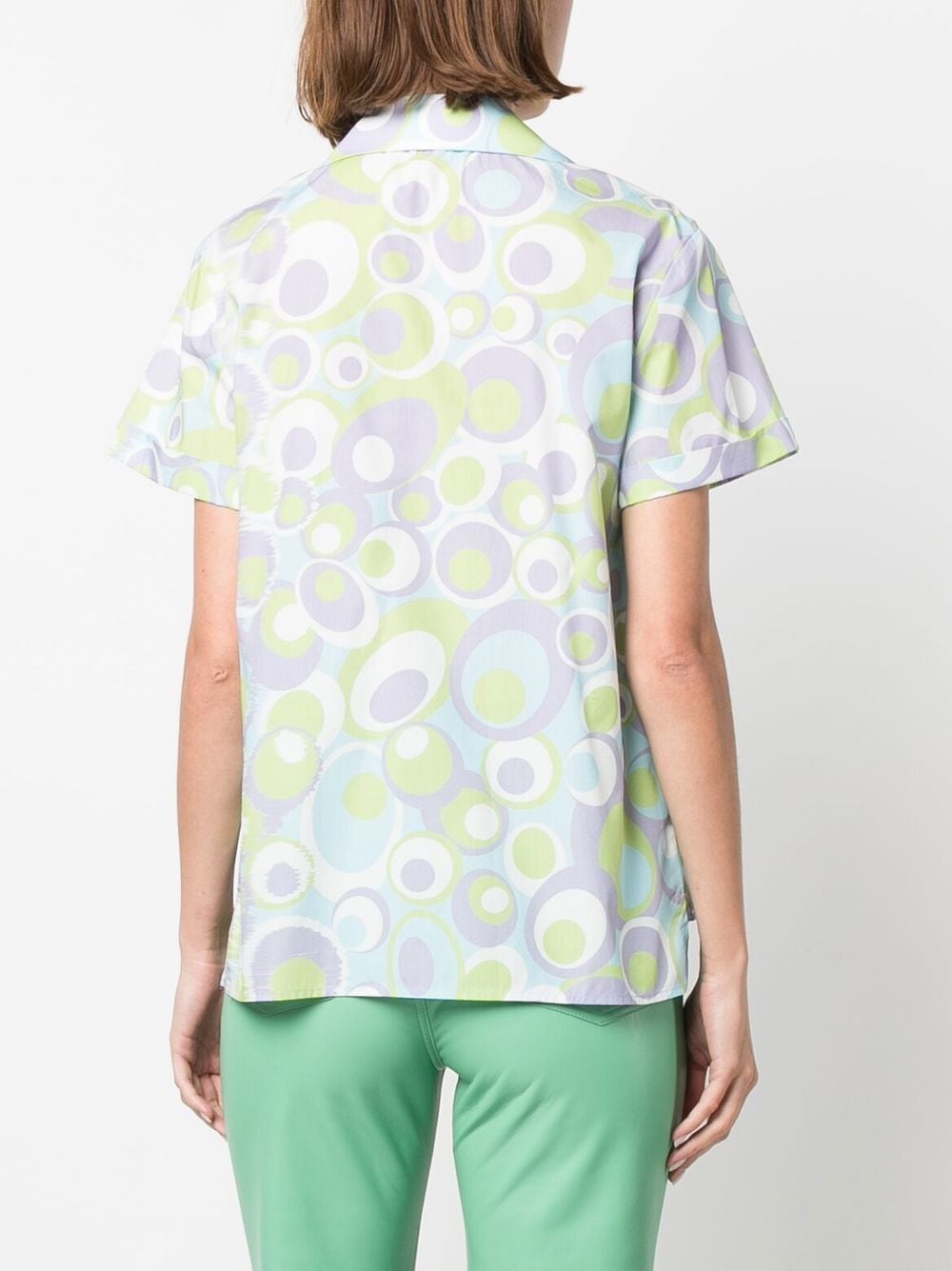 camicia, popeline, stampa multicolor, colletto aperto, bottoni, manica corta