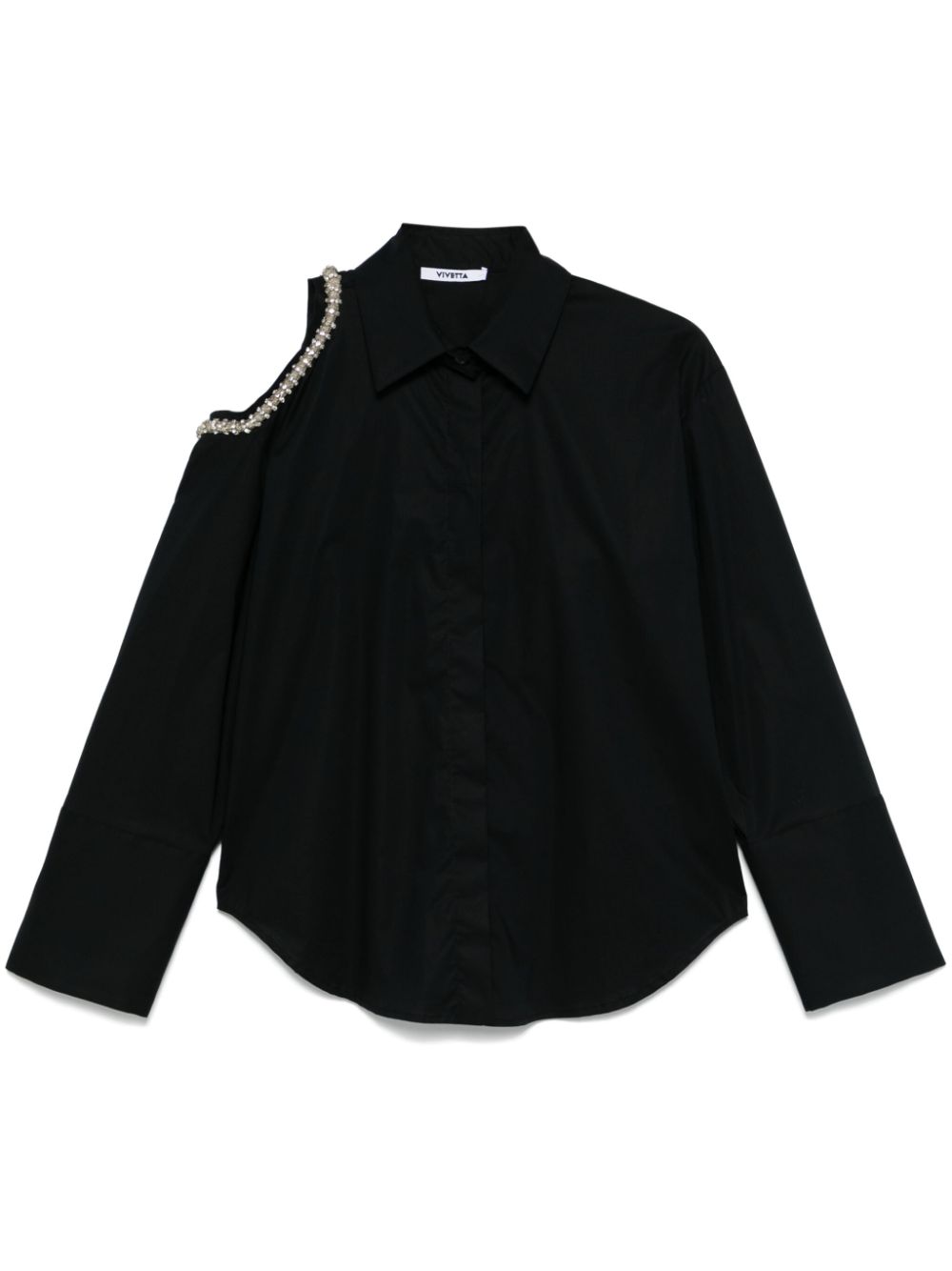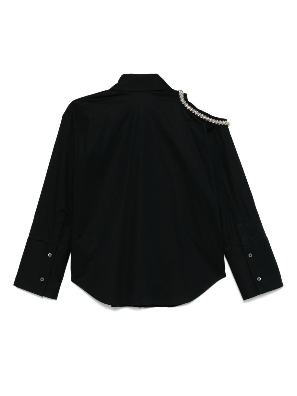 camicia, manica lunga, polso alto con bottoni, colletto a punta, chiusura con bottoni nascosta, oblò su spalla ricamato con cristalli e jais Composizione: 97% cotone 3% elastane Istruzioni per il lavaggio: lavare a mano