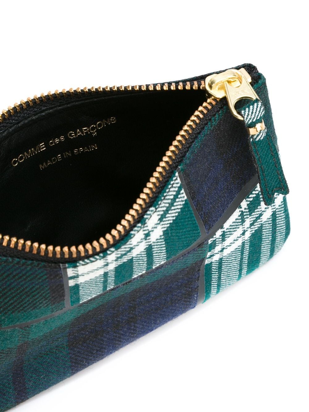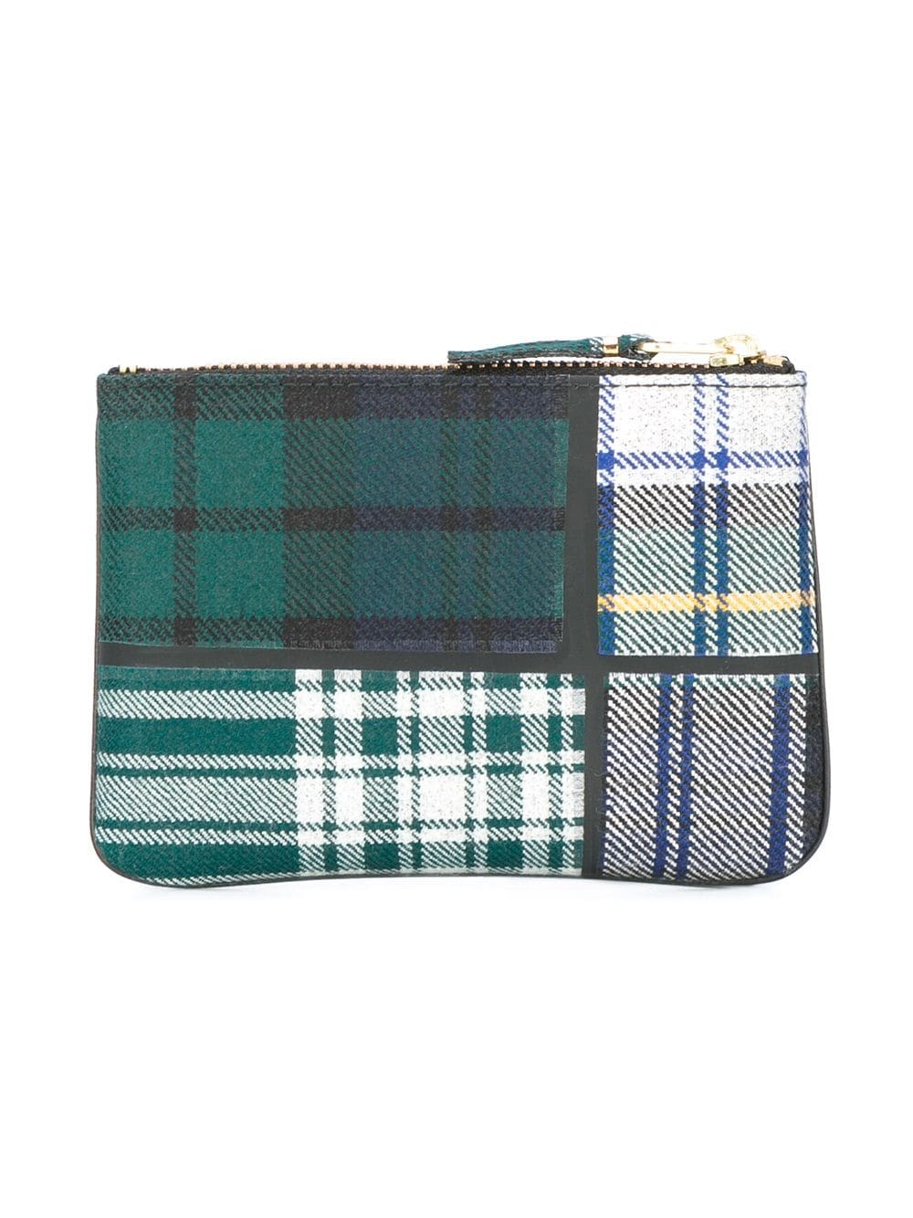 Portafoglio con motivo tartan, di Comme des Garçons Wallets. Modello con scomparto interno unico, chiusura con zip e logo nella parte interna. Composizione Poliuretano 100%, Lana 100%